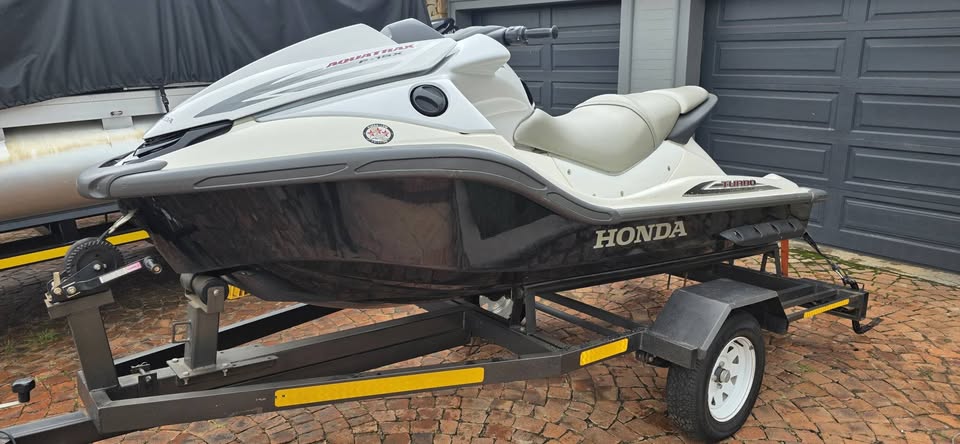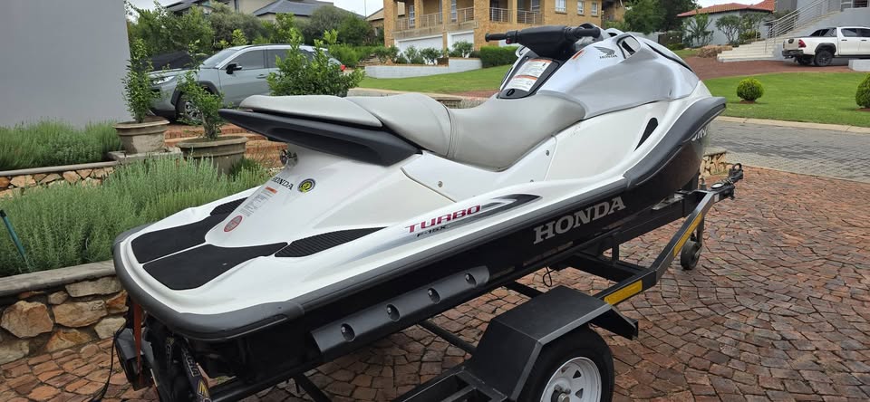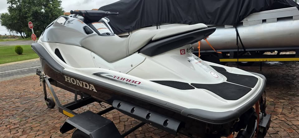 3 Steater Honda F15X TURBO Charged. This is the Skyline GTR of jetskis...! 1 owner from new and only 58 hours. Ideal for Wakeboarding, skiing, tubing and fishing. It is a very large and stable jetski but also super manoeuvrable! 1500cc 4 stroke Turbo. With very minor tweaks this can be turned into an +80mph Jetski - All Paperwork up to date - Excellent condition - Low Hours - 2008 model Located at Bronkhorstspruit Dam Selling Price @R175 000 Contact Lloyd