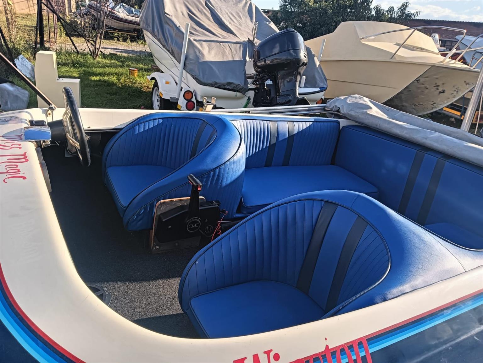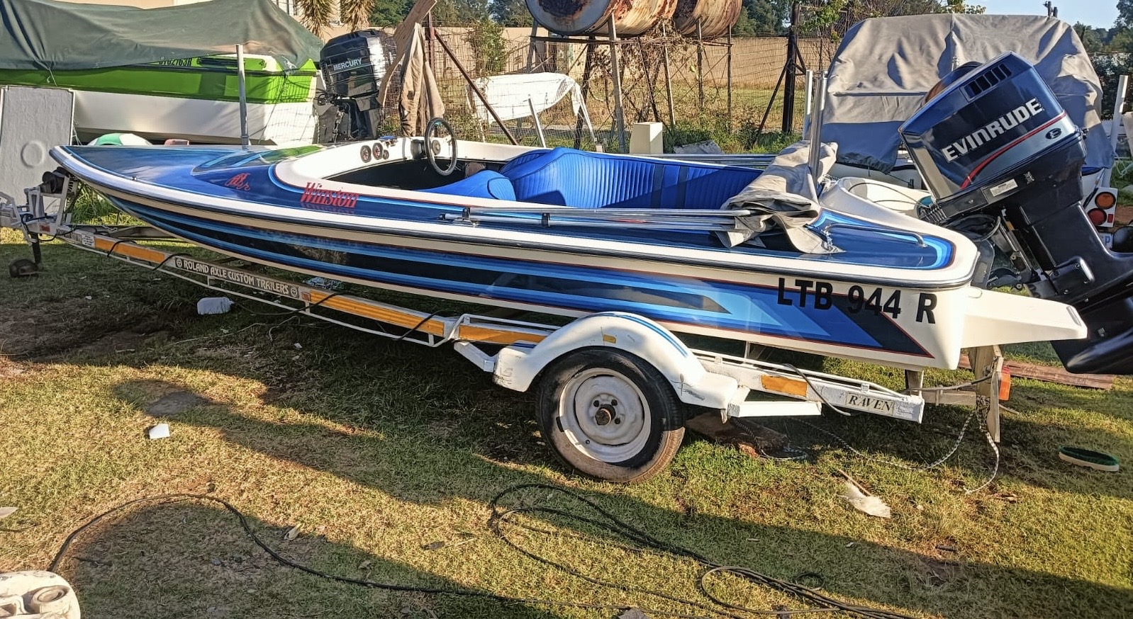 Mini Raven Speed Boat with 150 Evinrude motor. Newly upholstered seats and new carpets. Has 2 petrol tanks and suncanopy. Extras include ropes, ski's and lifejackets. Stored at Bronkhorstspruit Dam. Please contact Gavin if interested.