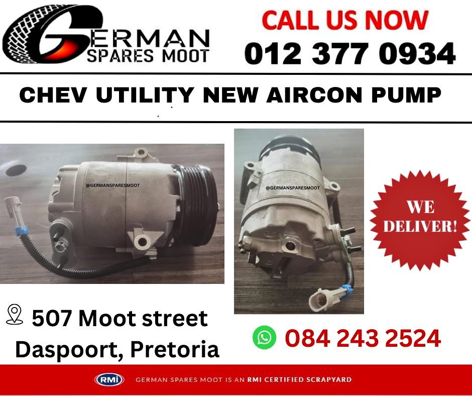 Brand-New Aircon Pump for Chev Utility! Upgrade your Chev Utility with a high-quality Aircon Pump, designed for superior performance and durability. We also stock a wide range of spare parts for Suzuki and Opel vehicles. ✅ Available for delivery across Gauteng ✅ Cash on Delivery (COD) available (Courier fees not included) For inquiries or to place an order, feel free to reach out via: 📍 Visit us at: 507 Moot Street, Daspoort, Pretoria 📞 Call us: 📱 WhatsApp: Ensure your vehicle runs at its best with our premium spares for Opel, Chev, and Suzuki. Get in touch today! #CarPartsPretoria #ChevroletSpares #Chevrolet #chevutilityspares #airconpump
