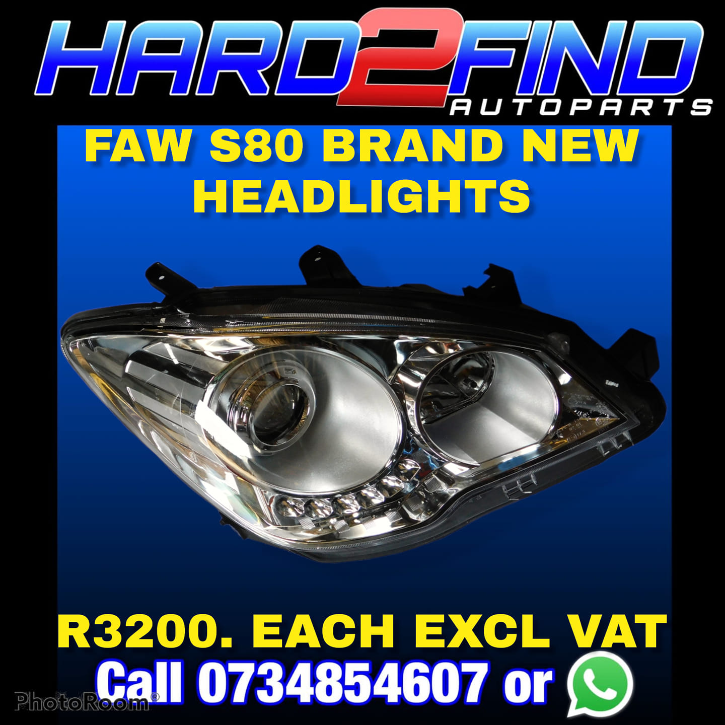 FAW S80 BRAND NEW HEADLIGHTS R3200. EACH EXCL VAT13 Top rd unit 3Anderbolt Boksburg !! Nationwide deliveries !!