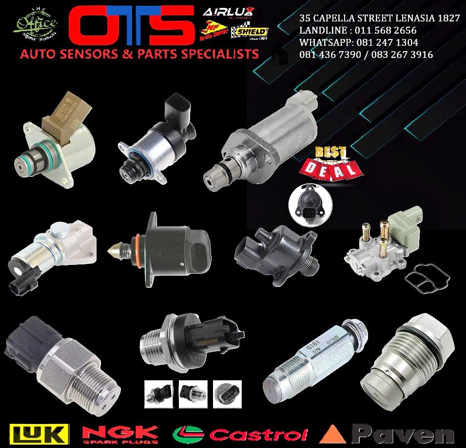Fuel Pressure regulators , Suction Control Valves , Fuel Idle Air Control Valves ,Fuel Rail Sensors ,Common Rail Metering Valves ,Limiting Valves & More Call Us Today on 011 568 2656view more for pricing & assistance or send us a WhatsApp with your vehicle details & part requirements For All Your Vehicle Requirements From Major replacement Parts to Auto Electrical Sensors Issues & replacement body panels Racing Fuels Accessories an so much more With Trustable Reliable Supplier outsource we offer you a Bigger range of all Automotive needs for daily drivers car enthusiasts racers Spinners drifters an all Ignition Coils - Crank Sensors - Suction control valves - Fuel Idle control valves- Fuel Rail Sensors - Tps Sensors-Map Sensors - Airflow meter sensors- ThrottleBodys - Fuel Pumps - Fuel Injectors Body kits Spoilers &More Courier available Nationwide @R99 Like an follow us for more info Facebook page https://www.facebook.com/share/18ivb2WBKY/ Instagram https://www.instagram.com/otsautosensors?igsh=MTF0dnNqM3IweWM0OQ== Tiktok https://www.tiktok.com/@otsautosensors?_t=ZM-8ulUiNDHqFi... Call us on 011 568 2656view more or 081 247 1304view more /083 267 3916view more Visit Us at our lenasia branch 35 Capella Street Lenasia Across trade route mall Please Note Majority of our Products range are not kept instore at this branch. Please Enquire About Orders and Collections