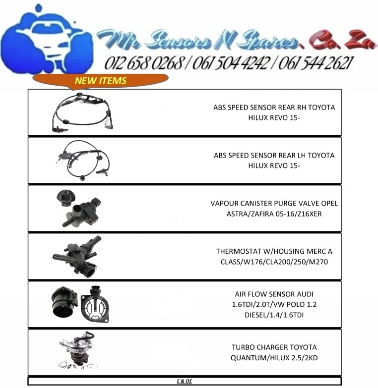 In Stock ABS Speed Sensors Vapour Canister Purge Valves Air Flow Sensors Turbochargers Call Us Now Mr Sensors N Spares SA 012 658 0268view more Or Visit Our Website https://mrsensorsnspares.co.za/