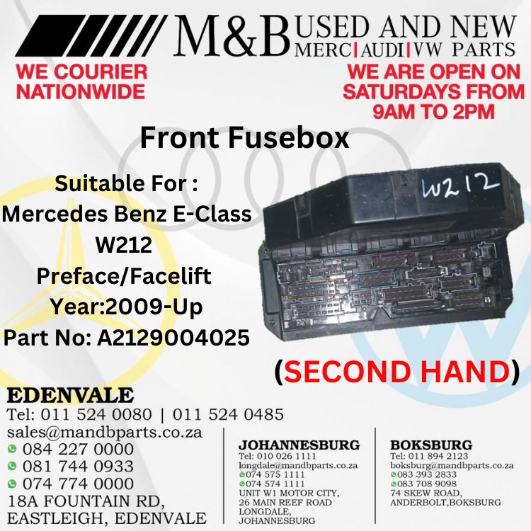 Front Fusebox Suitable For : Mercedes Benz E-Class W212