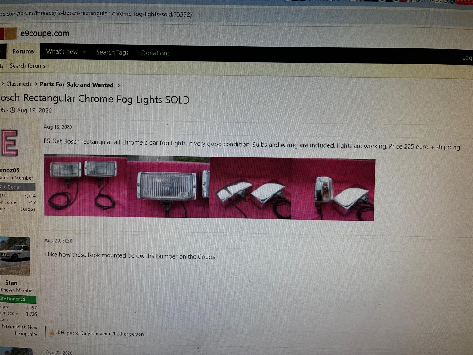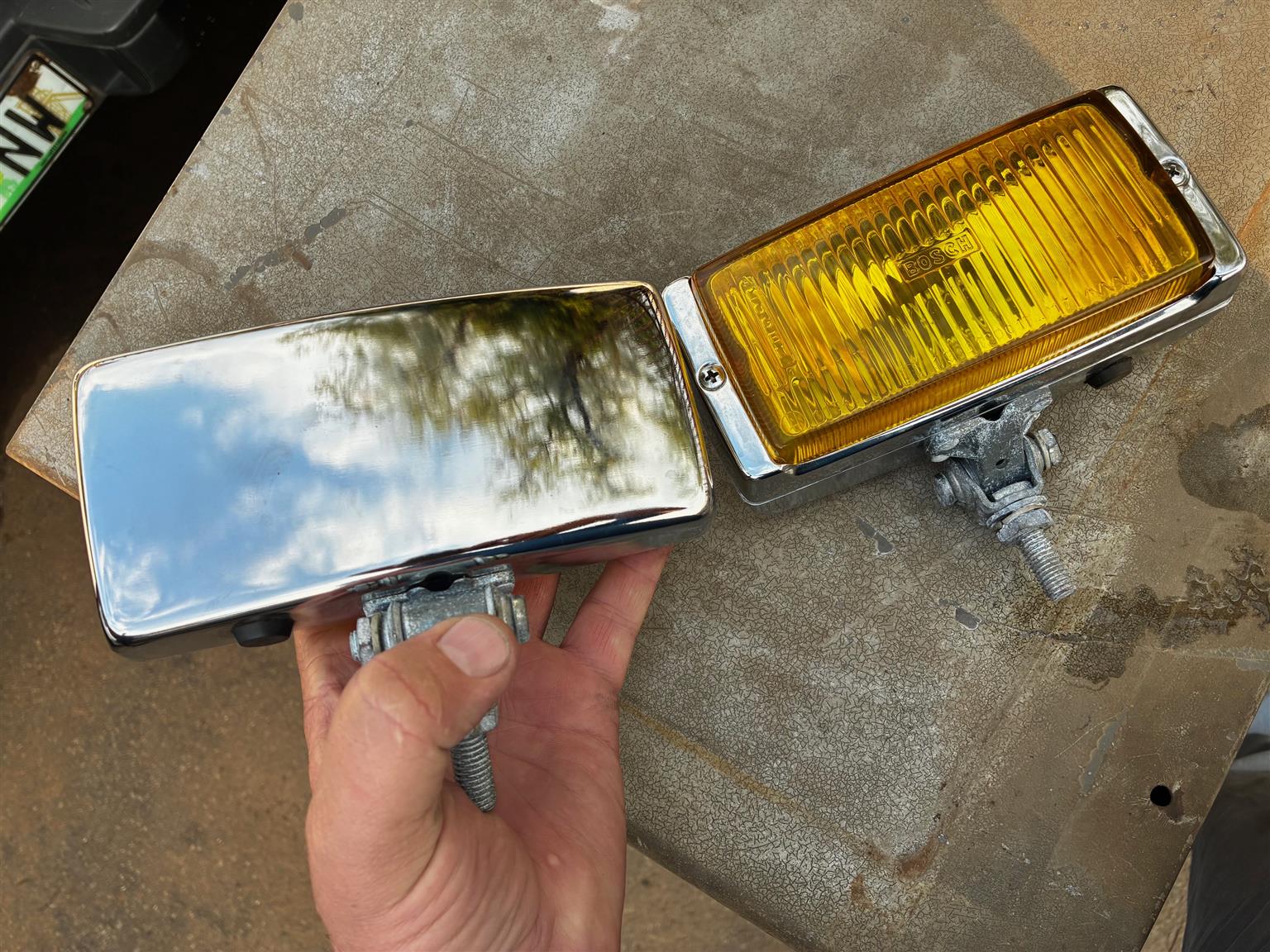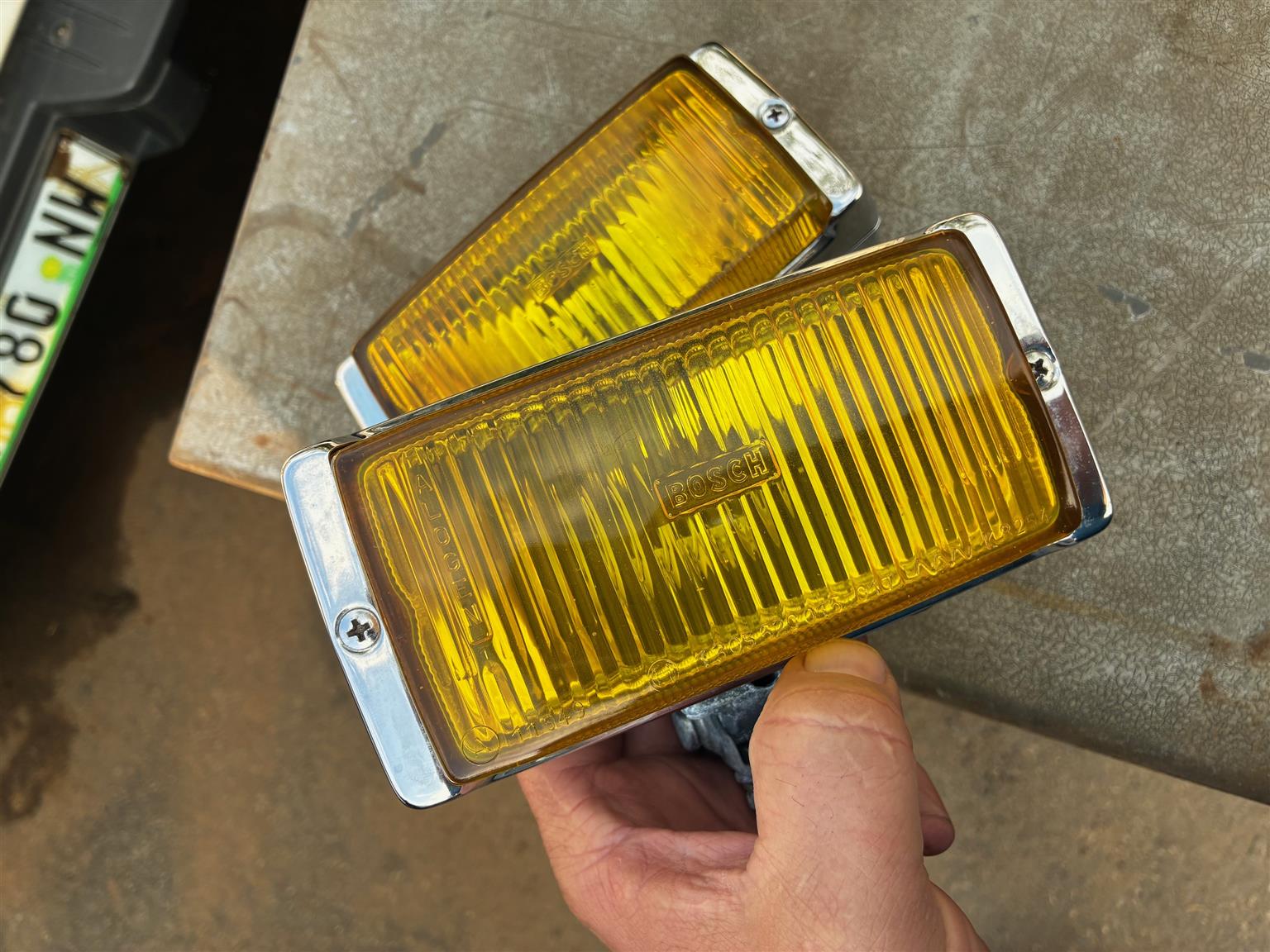 Fog spot Lamps Bosch New Old Stock Chrome back as per pictures. These are NEW and in excellent condition ideal for your classic vintage old car to fit VW Porsche 911 930 (1923 - 83) Volkswagen Mercedes Benz Merc M/B also fits BMW E9 Ford Dodge lights rectangular.