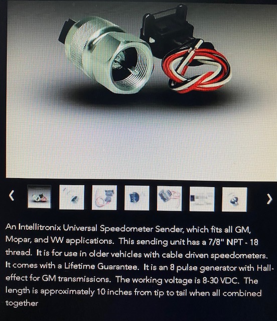 Speedo Sensor Sender Unit with plug & harness from mechanical gearbox to electronic speedo BRAND NEW for all GM Chevy, Chevrolet 700R4 turbo 350 T700 T400 power glide gear box also fits Dodge Mopar, Jeep, VW, Volkswagen etc. As per Pictures. Speedometer Universal.