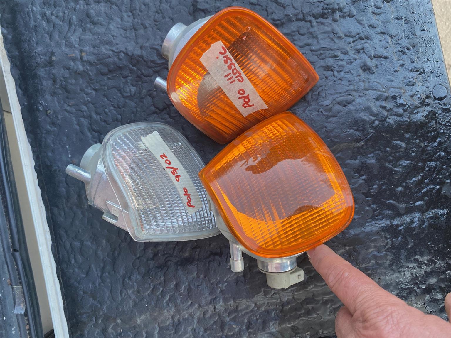 VW Polo corner light park lamp turn signal indicator only one Left clear R199 and 2 Amber available as per pictures Volkswagen 1996 - 2003 model & 1 globe holder also available 2 x Orange sold as set R450 - OE original genuine VW units Playa Classic Millenium.