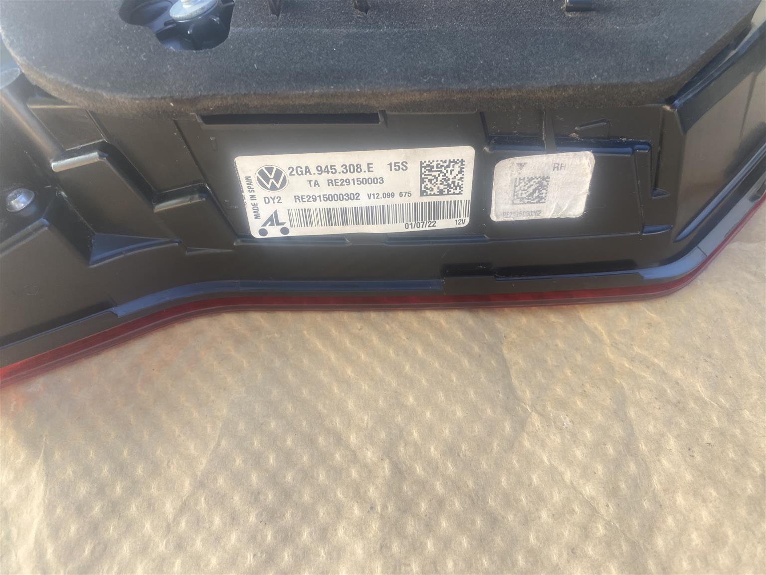 2022 VW T-ROC INNER LED TAIL LIGHT RIGHT SIDE FOR SALE. IN PRISTINE CONDITION