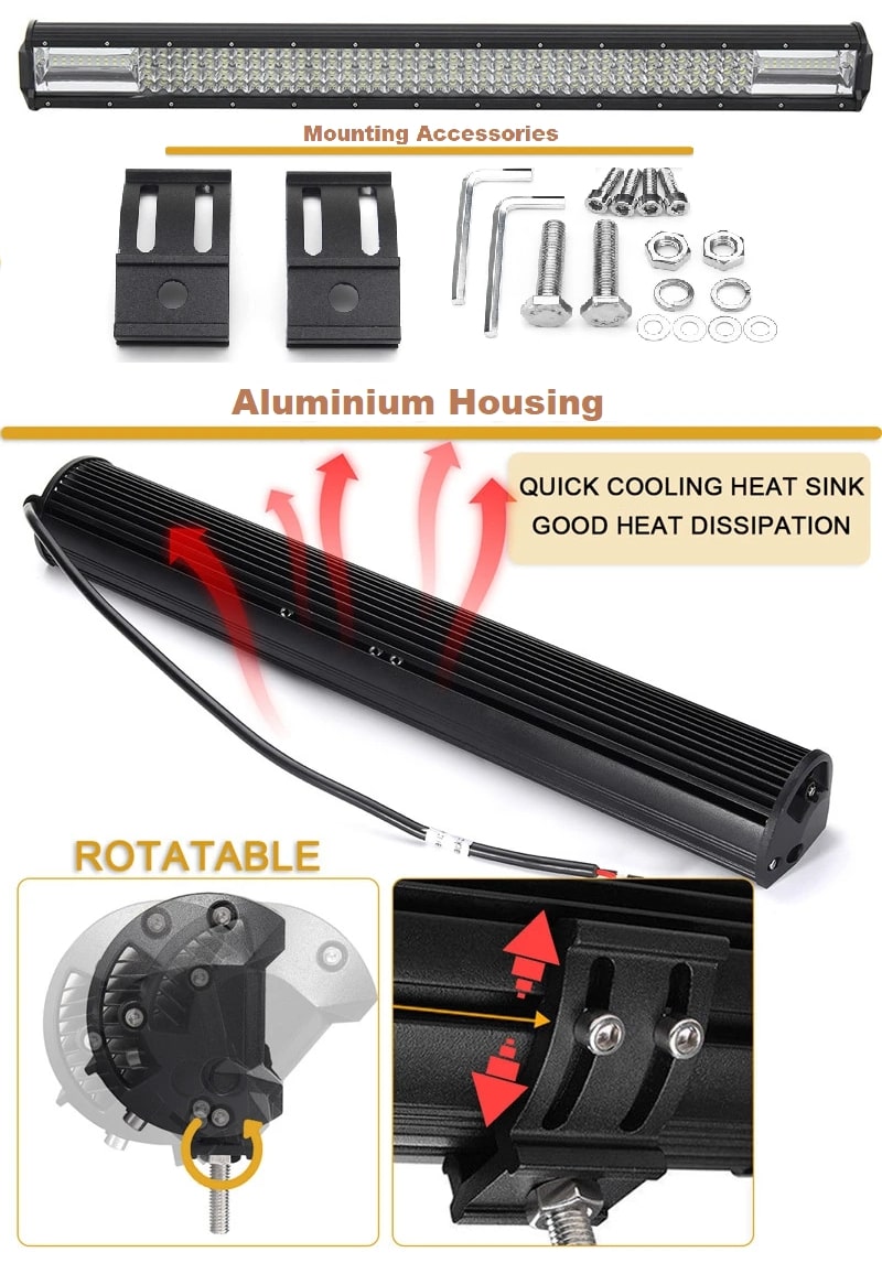 384W LED Quad-Row 7D Reflector Light Bar with Combo Beam.