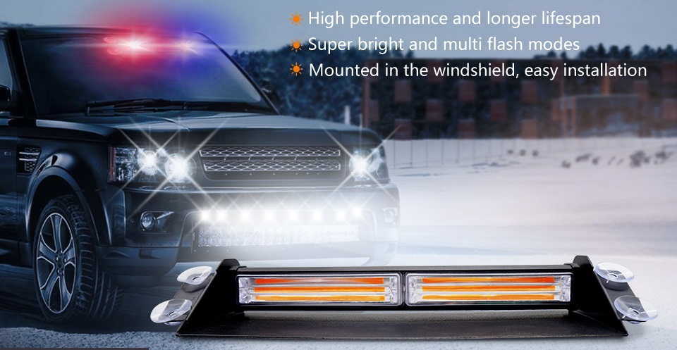 COB LED Amber Emergency Vehicle Dashboard Flash Warning Windscreen Light with multiple modes.