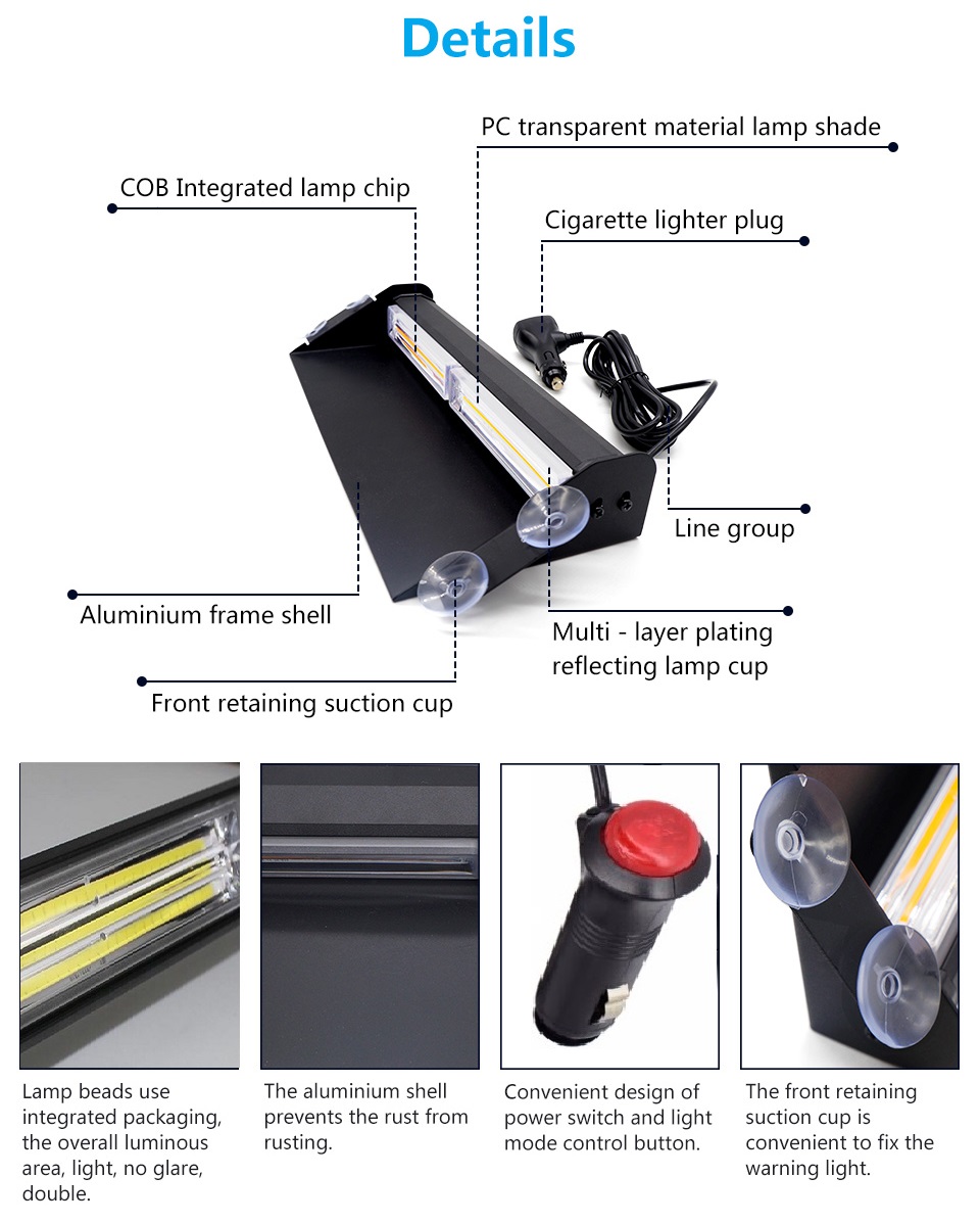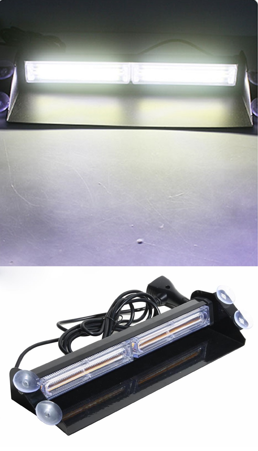 Cool White COB LED Emergency Vehicle Dashboard Flash Warning Windscreen Light with multiple modes.