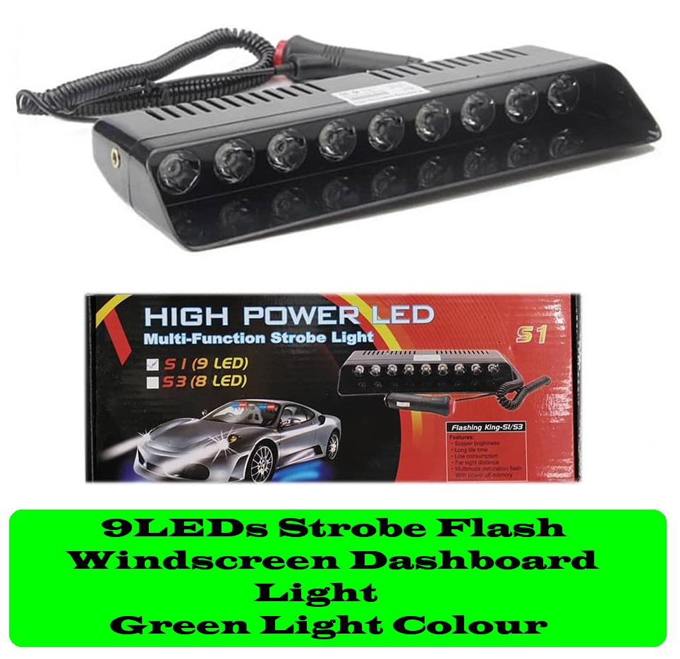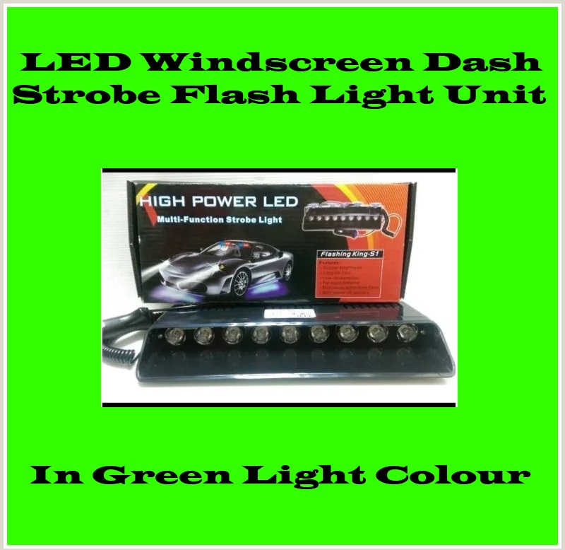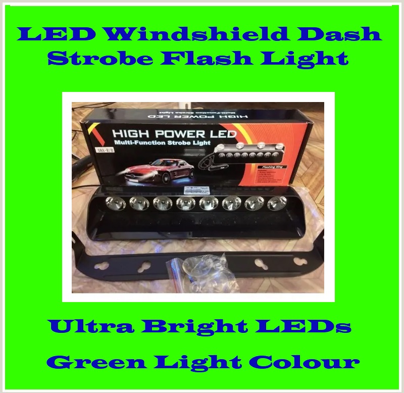 9LEDs Windscreen Strobe GREEN Emergency Vehicle Flash Warning Dashboard Light.