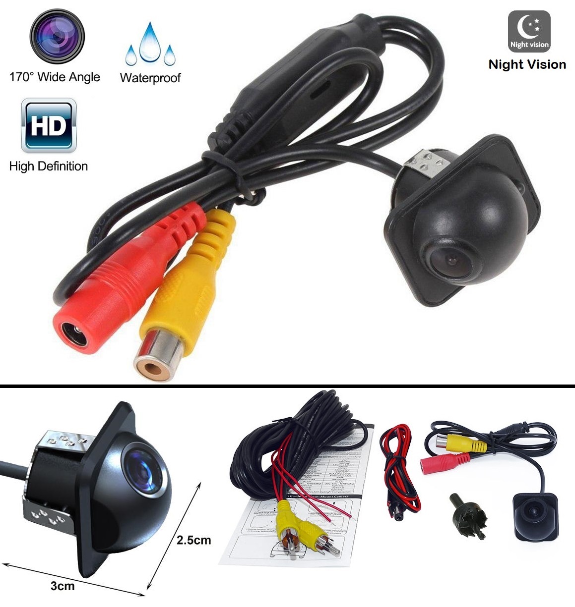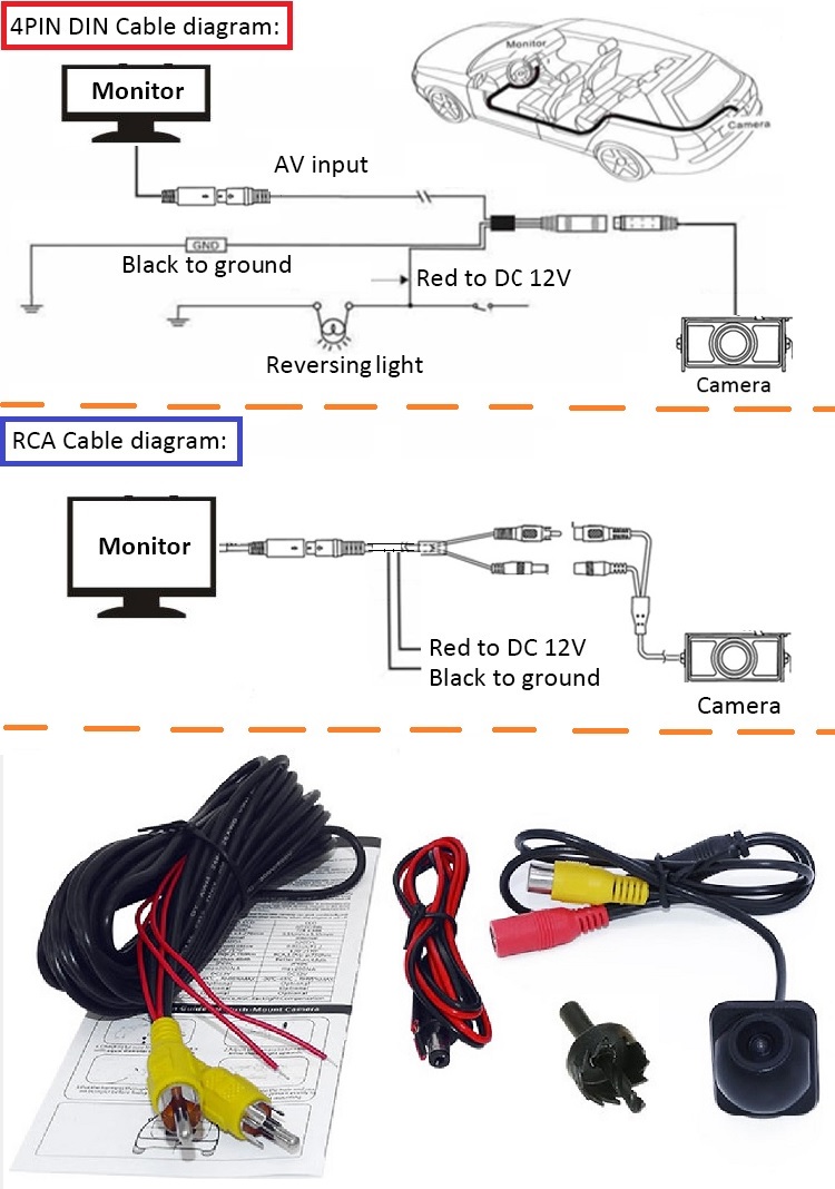 Should be installed at proper positions on the vehicle and used with a Monitor/GPS/Parking Sensor etc.