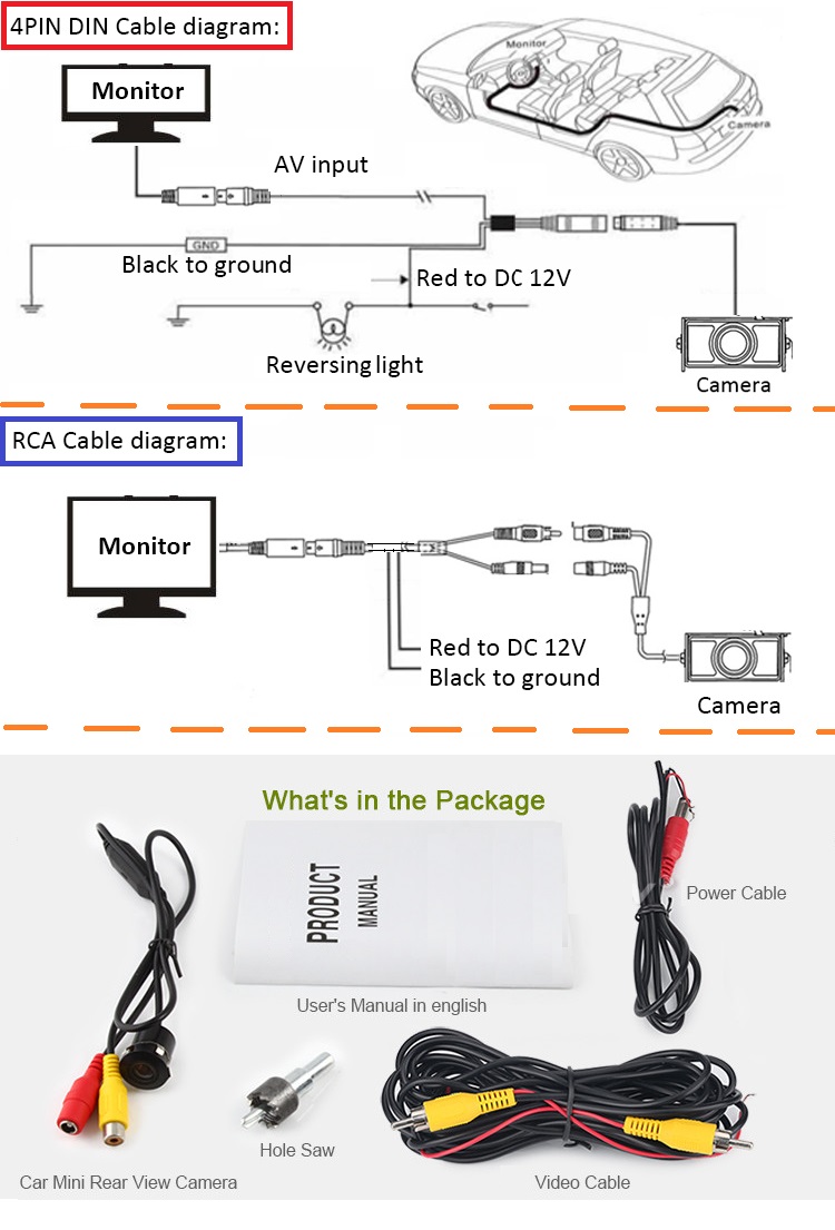 Should be installed at proper positions on the vehicle and used with a Monitor/GPS/Parking Sensor etc.