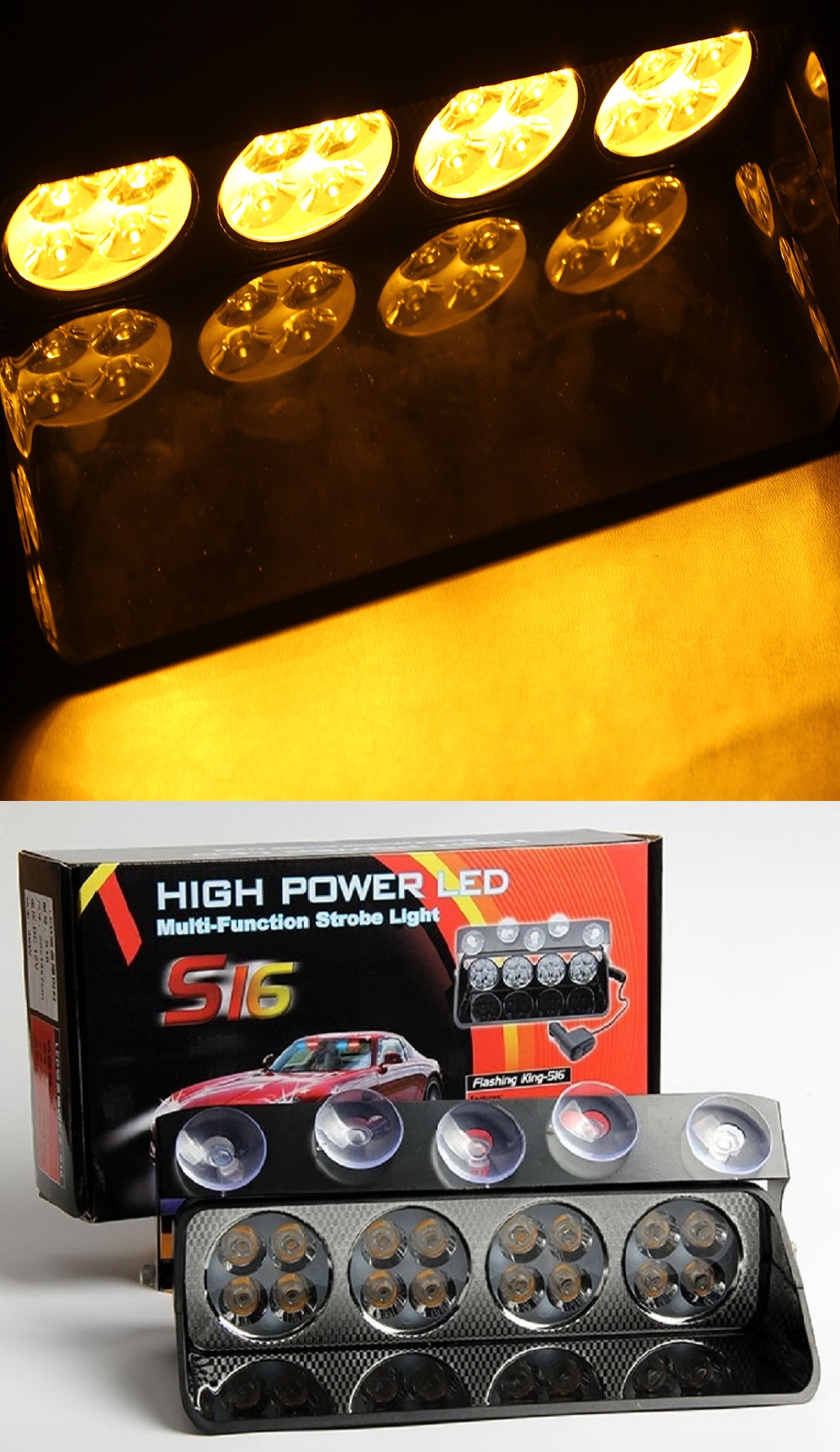 LED Strobe Amber Yellow Orange Emergency Vehicle Flash/Warning Dash Light with 16 Modes.