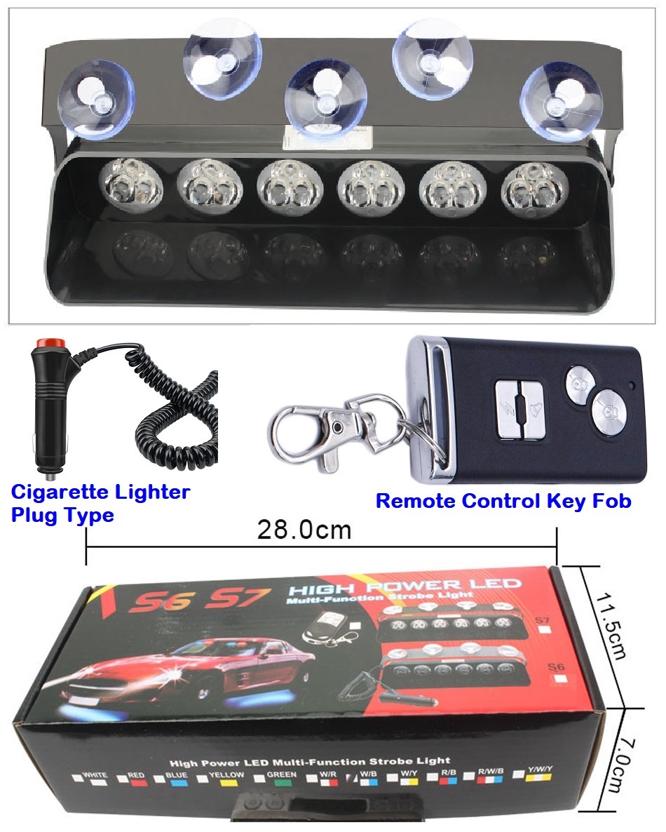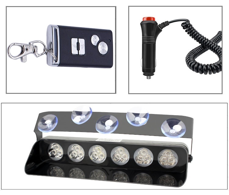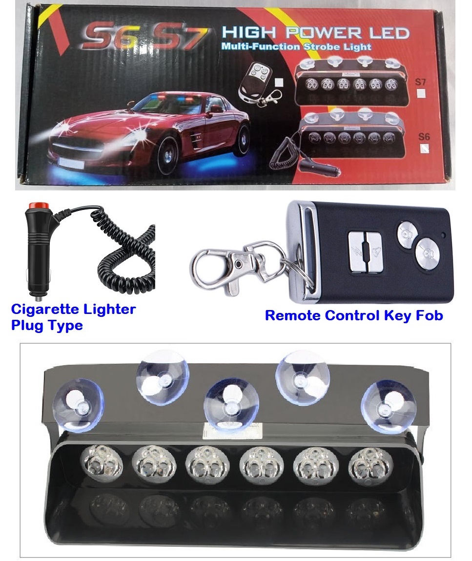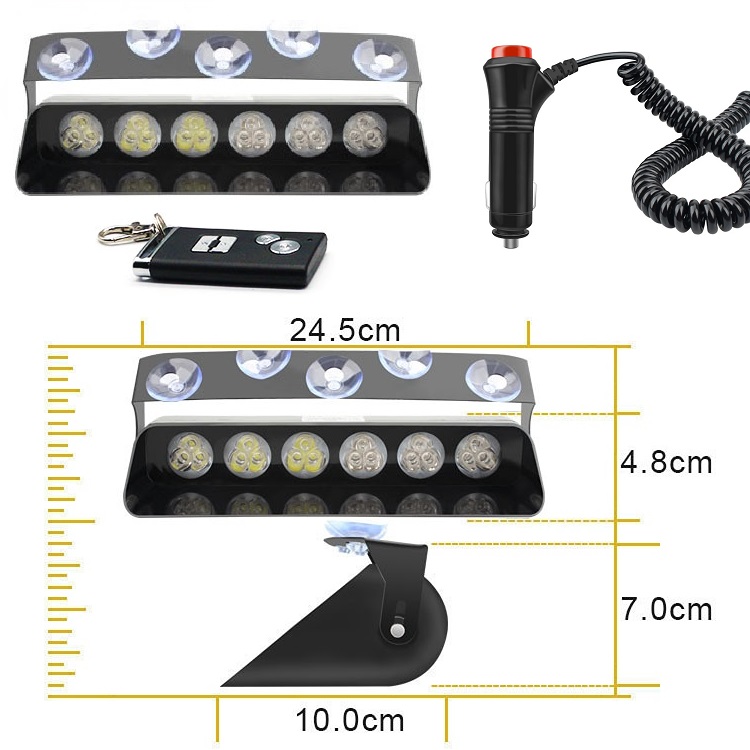 Remote Controlled LED Windscreen Strobe Cool White Vehicle Flash Warning Dashboard Visor Light with Multiple Strobe/Flash Modes.