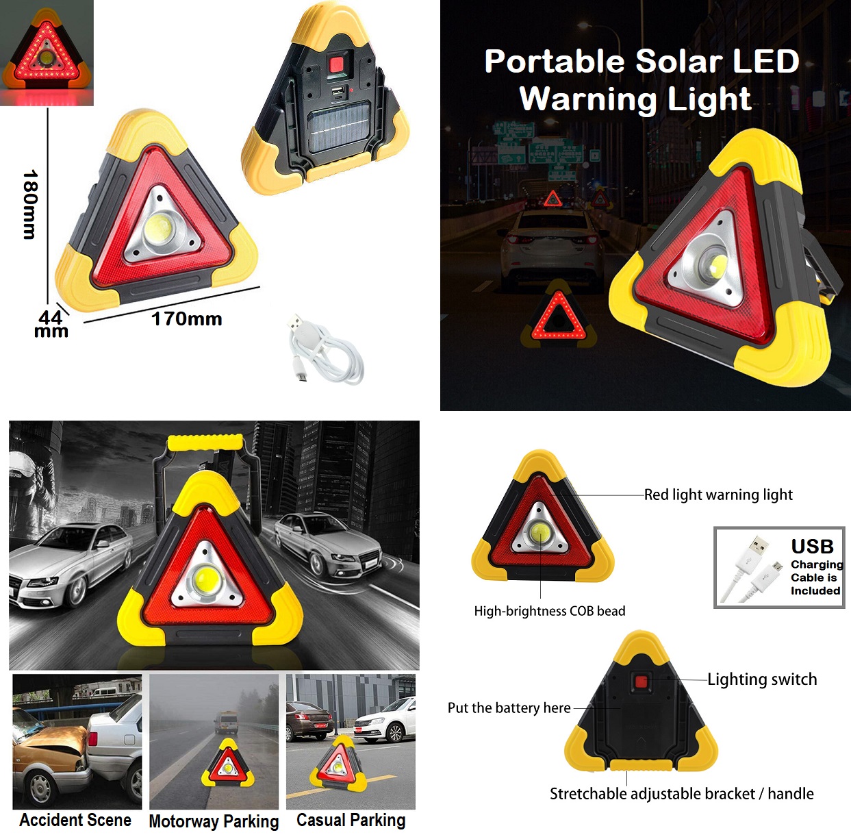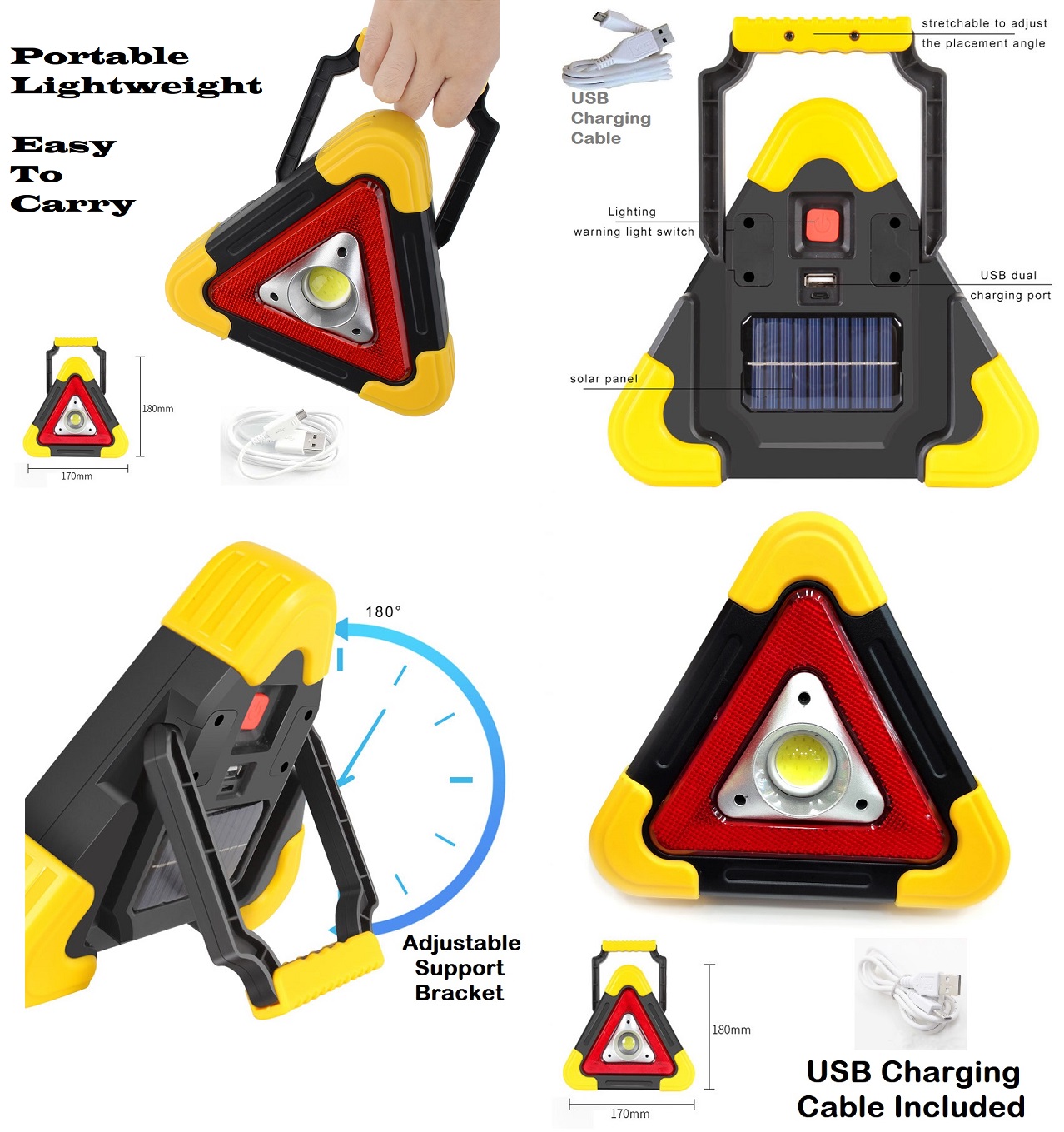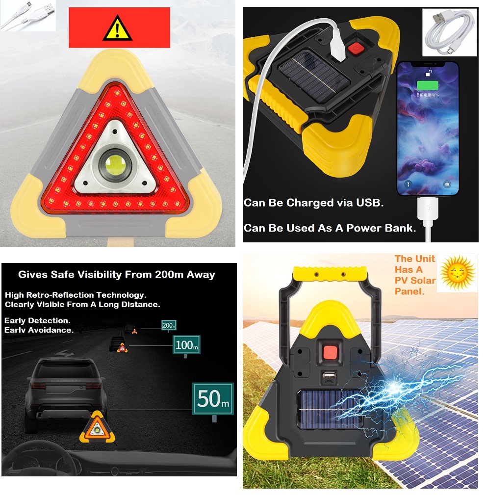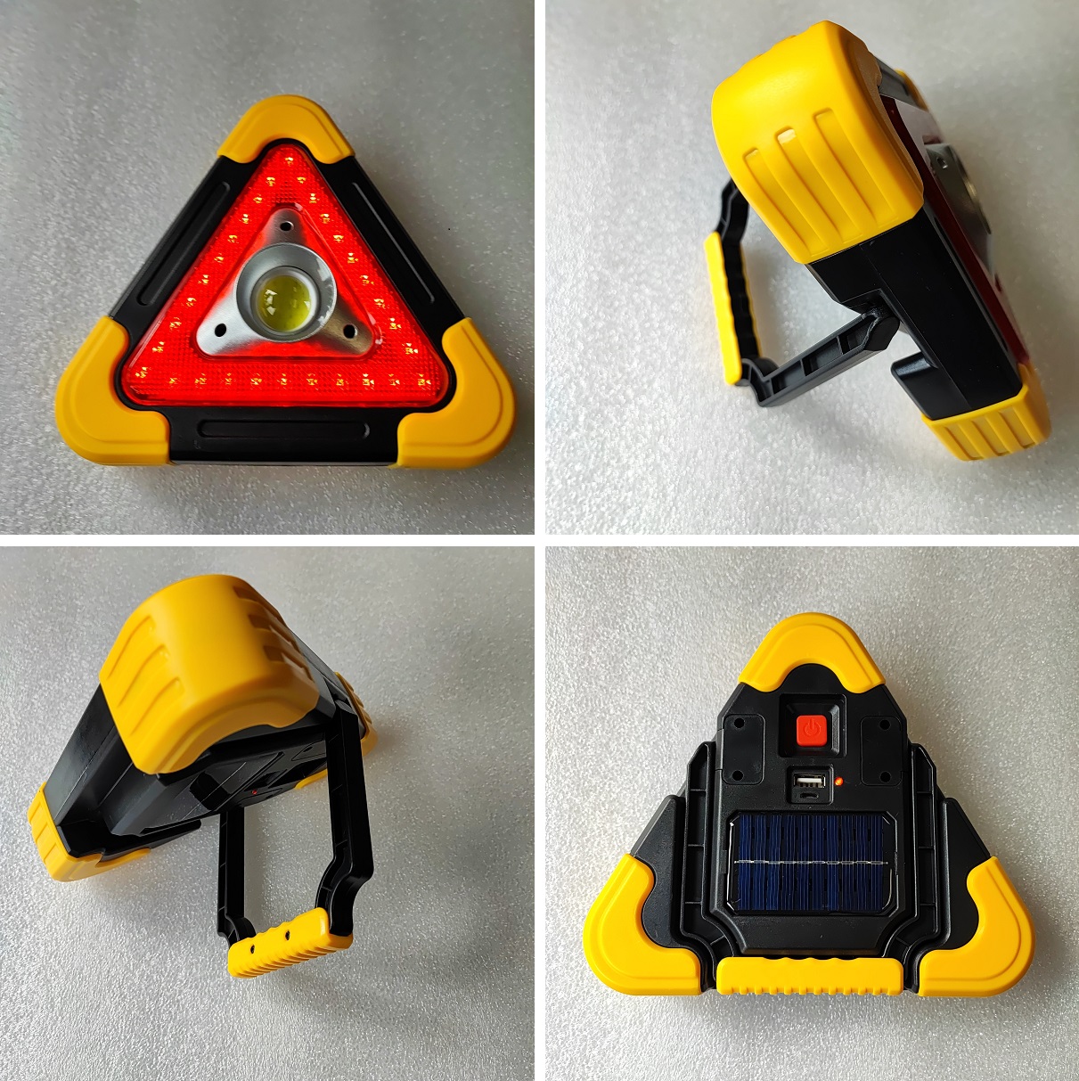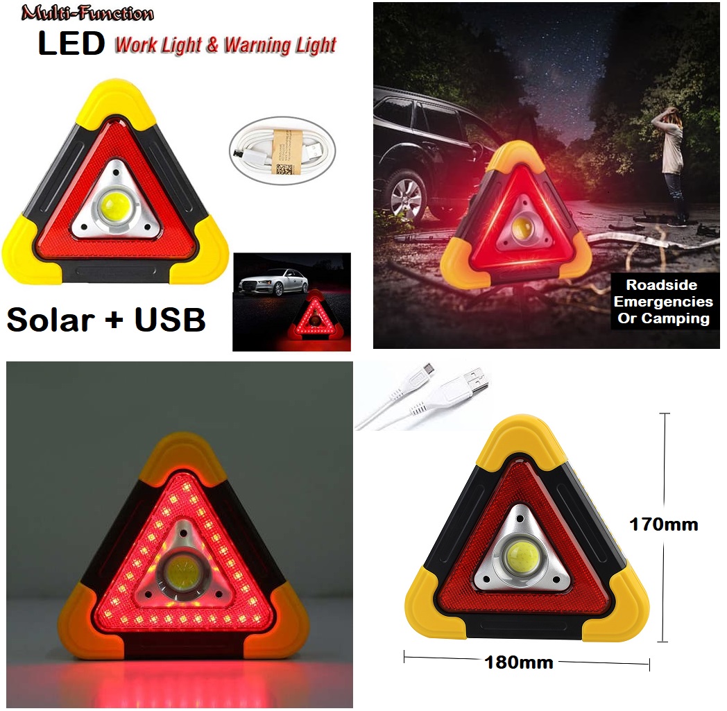 Solar LED MultiFunction Work Flood Light Red LED Emergency Warning Triangle.