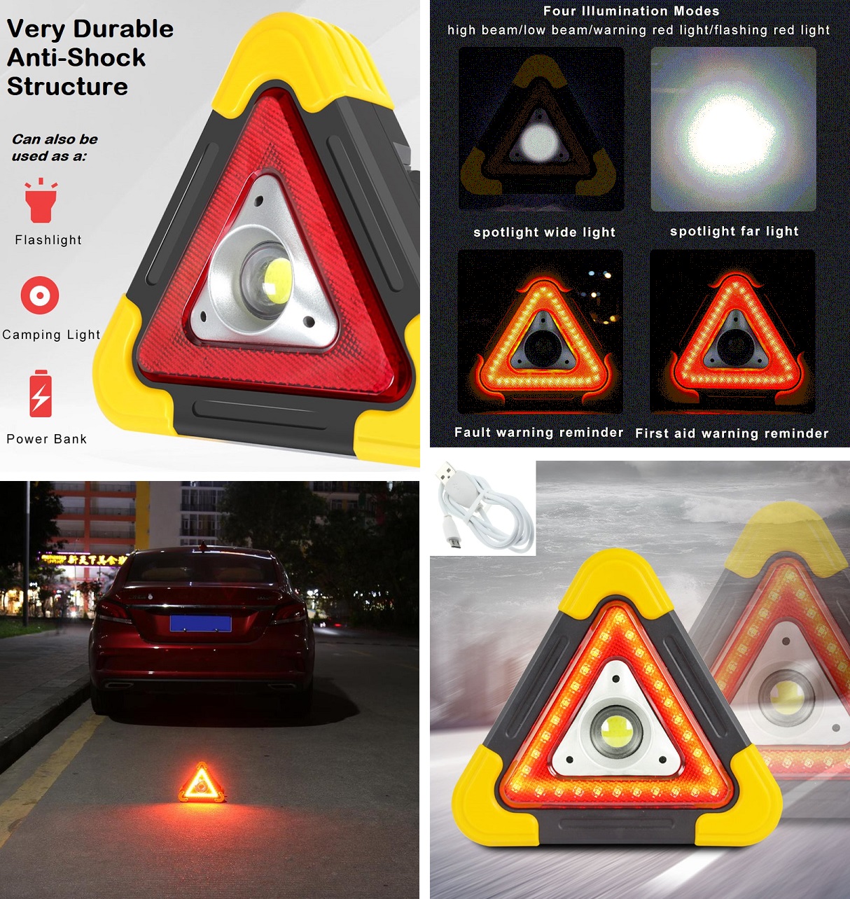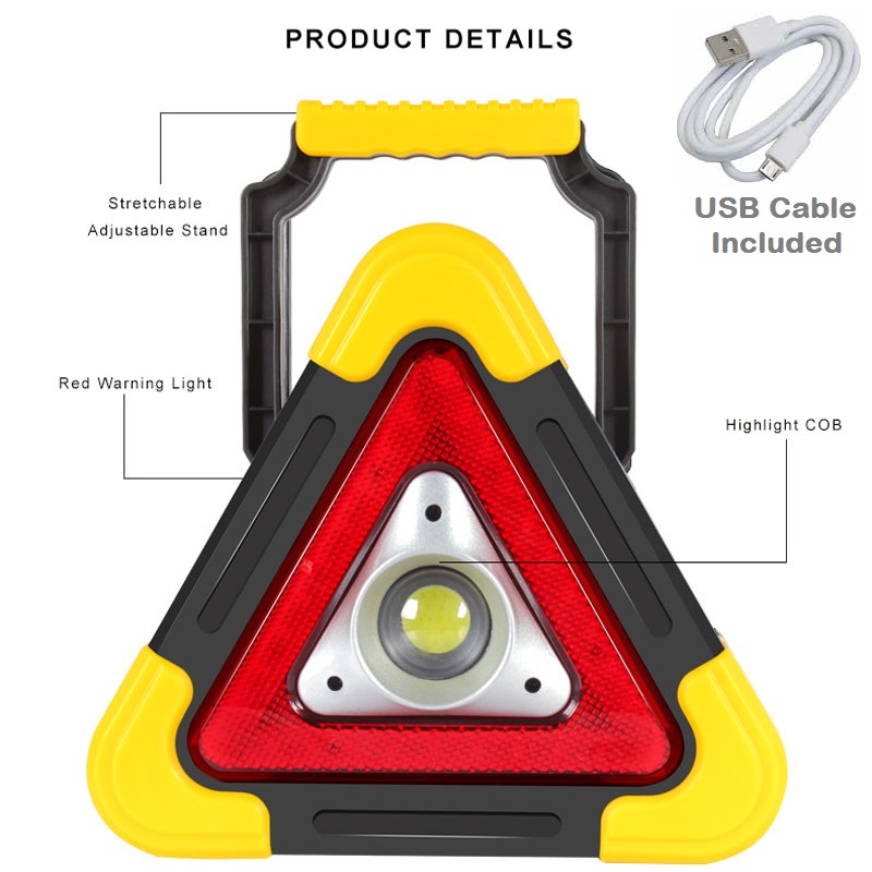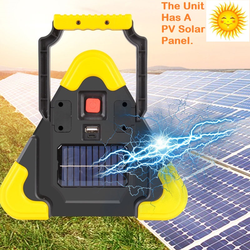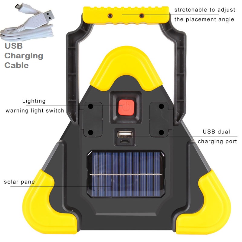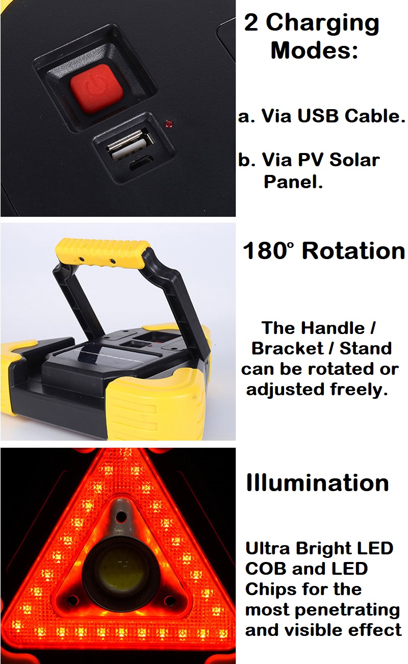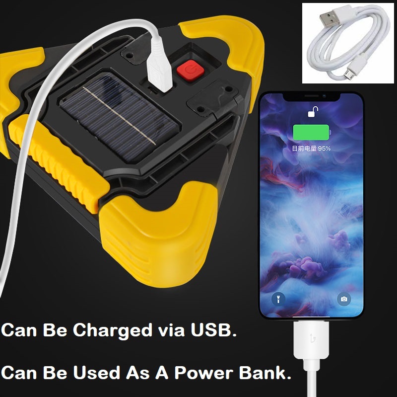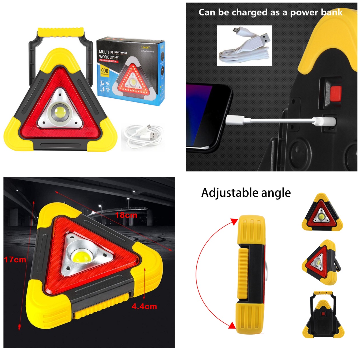 Solar LED MultiFunction Work Flood Light Red LED Emergency Warning Triangle.