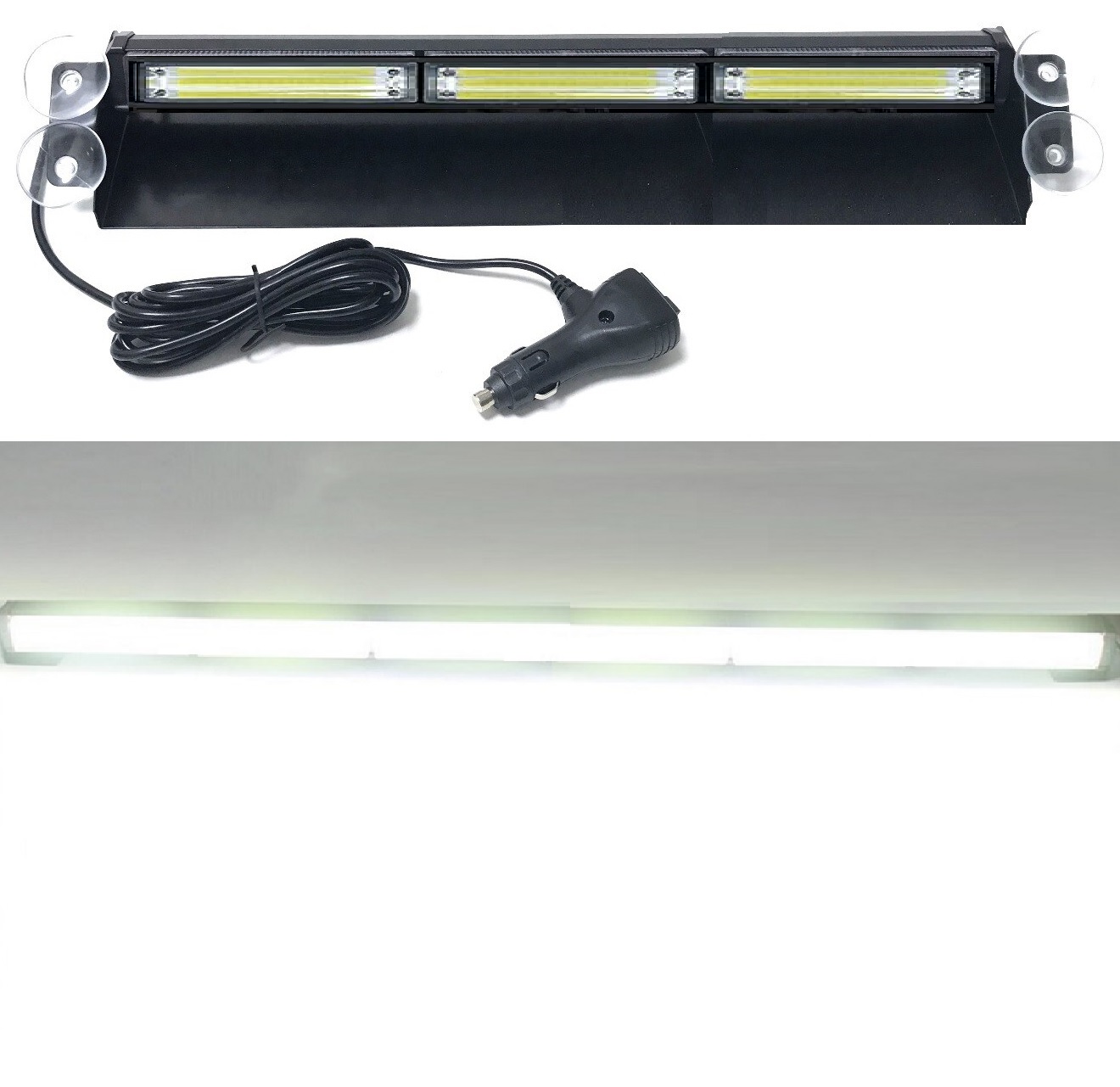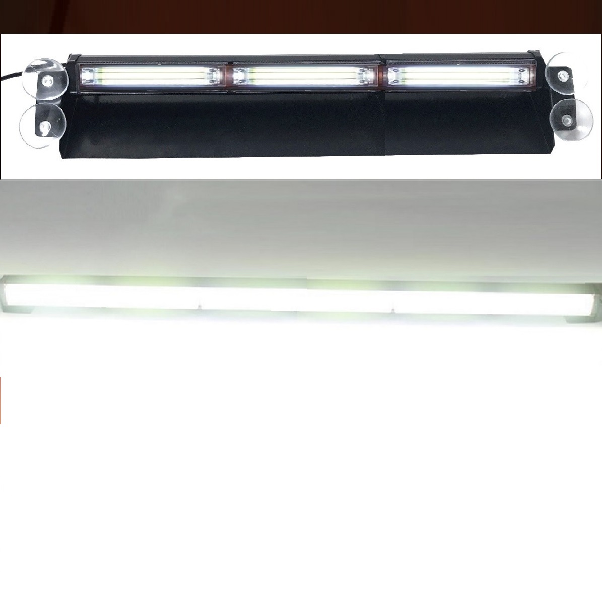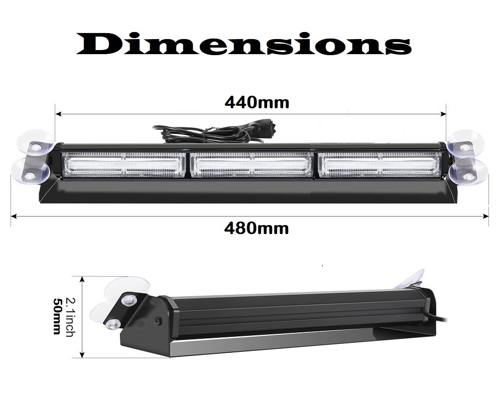 Very Long Cool White COB LED Emergency Vehicle Dashboard Flash Warning Windscreen Light with Multiple Modes.