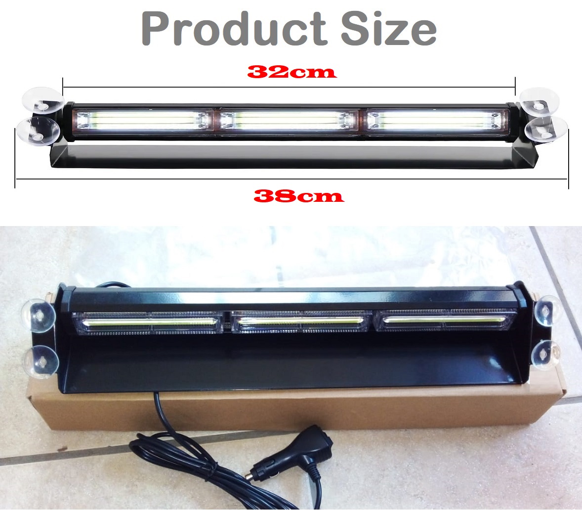 Very Long Red COB LED Emergency Vehicle Dashboard Flash Warning Windscreen Light with Multiple Modes.