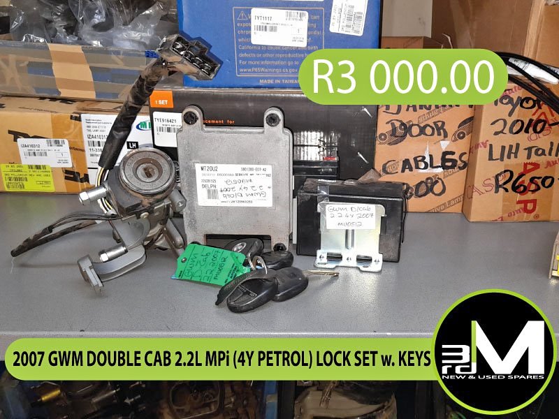 2007 GWM DOUBLE CAB 2.2L MPi (4Y PETROL) LOCK SET w. KEYS Please note that our electrical components are non-refundable and non-returnable. To ensure, we provide you with the correct component, please speak to one of our experienced salesmen, via means provided by the current platform, alternatively; Call our landline on , or text us out WhatsApp on .