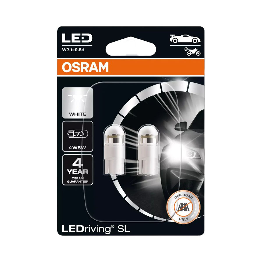 LEDriving SL W5W replacement lamps offer a modern and intense light with a color temperature up to 6,000 Kelvin. These replacement lamps are suitable for all conventional W5W lamp bases. In comparison to standard lamps, these LED retrofit lamps use up to 80% less energy. OSRAM offers a 4 year guarantee for these LEDriving SL lamps.These products do not have ECE approval and must not be used on public roads in any exterior application. Public roads use leads to cancellation of operating license and loss of insurance coverage. Several countries forbid sale and use of these products. Please contact your local distributor for further information.
