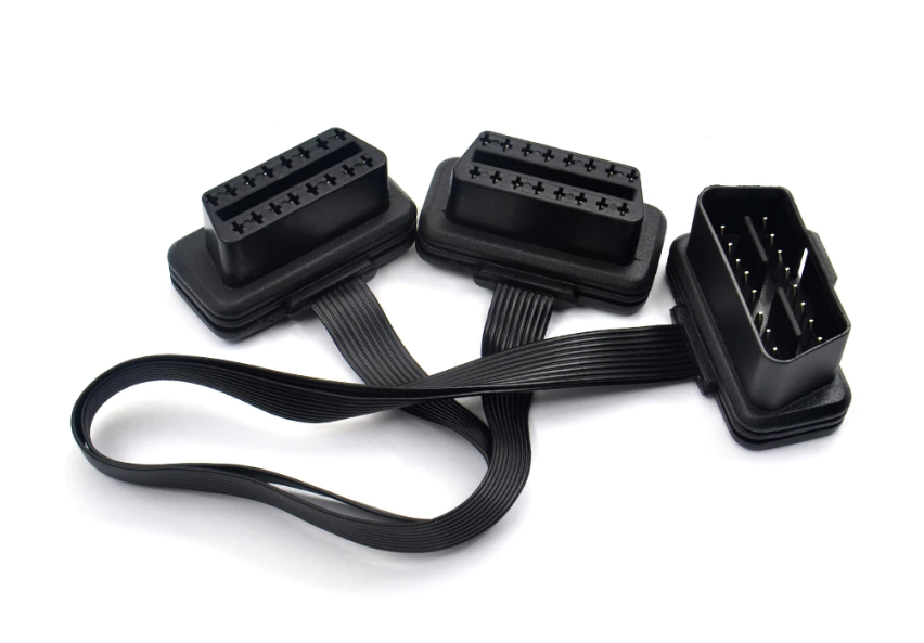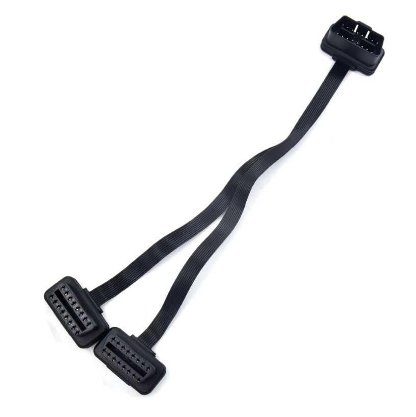 OBDII Extensions Dual Connector Y-Splitter OBDII 16PIN Male to Female Connection Cable (Flat +Thin)