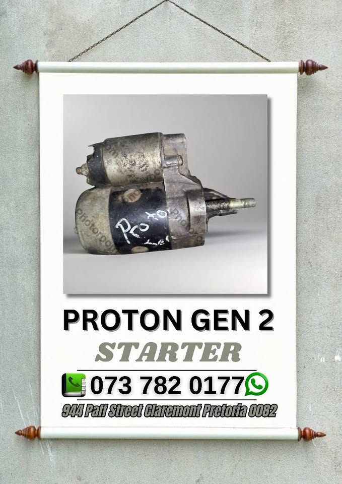 Proton gen 2 starter We sell spares for most car models Engine parts available We are a second hand spares shop BC AUTO WORKSHOP : ZERO SEVEN THREE SEVEN EIGHT TWO ZERO ONE SEVEN SEVEN 944 PAFF ST CLAREMONT PRETORIA 0082