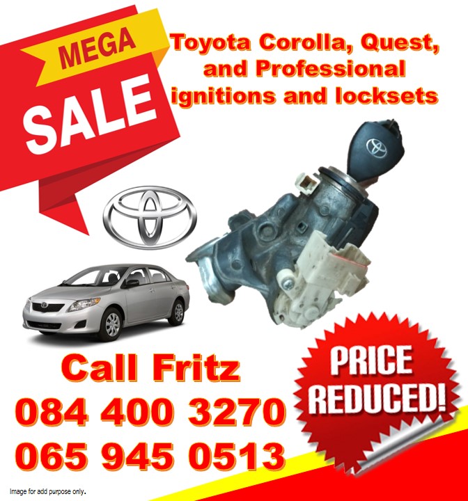 I'm thrilled to present an exclusive offer on ignitions and lock sets for Toyota Corolla, Quest, and Professional models. Whether you're in Pretoria or any city across South Africa, I've got you covered – I can arrange prompt delivery of these quality spares right to your doorstep. Reach out to me via call or WhatsApp at 084 400 3270view more or give me a ring at 065 945 0513view more.