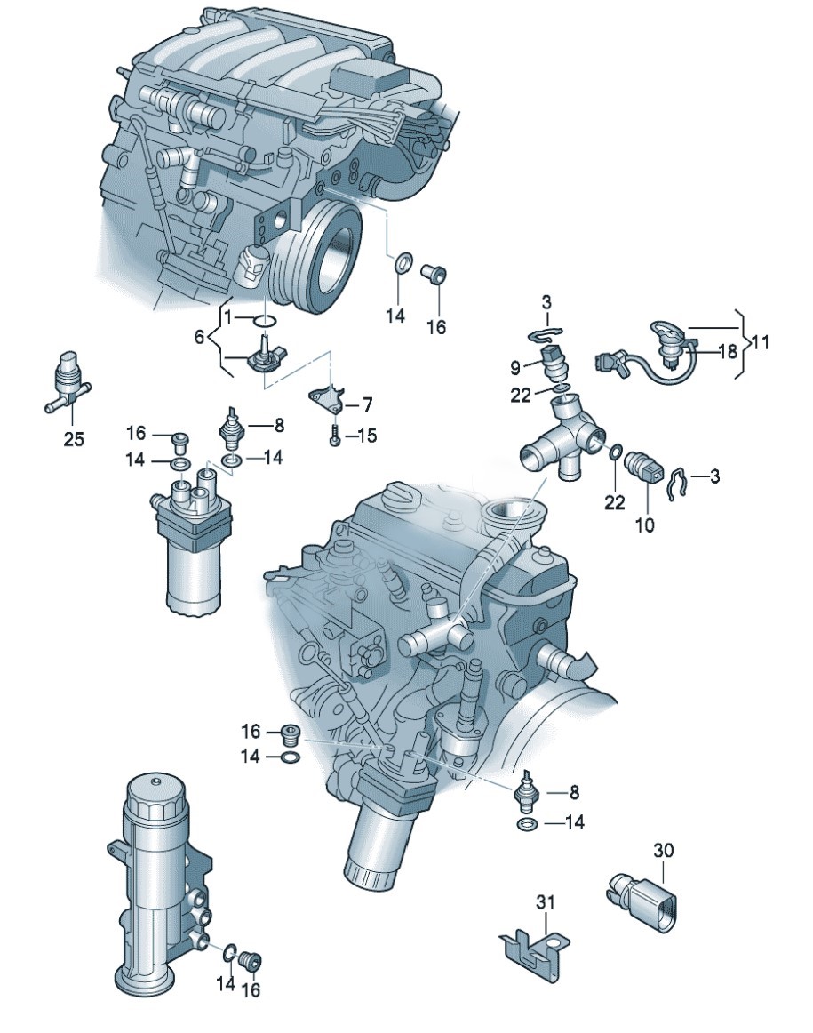 VW 1.4 TSI Switches and sensors on engine and gearbox
