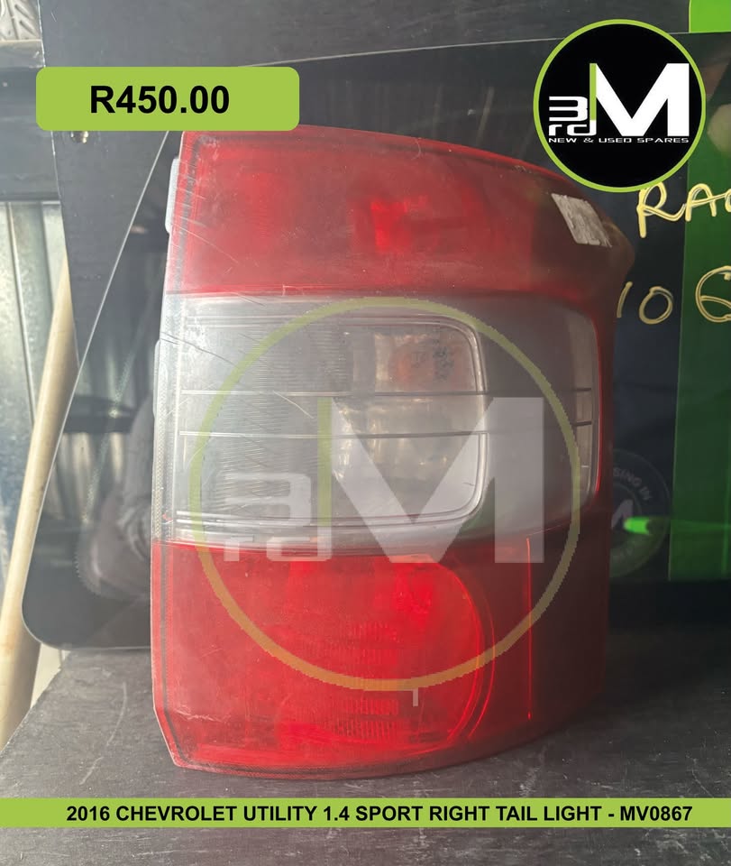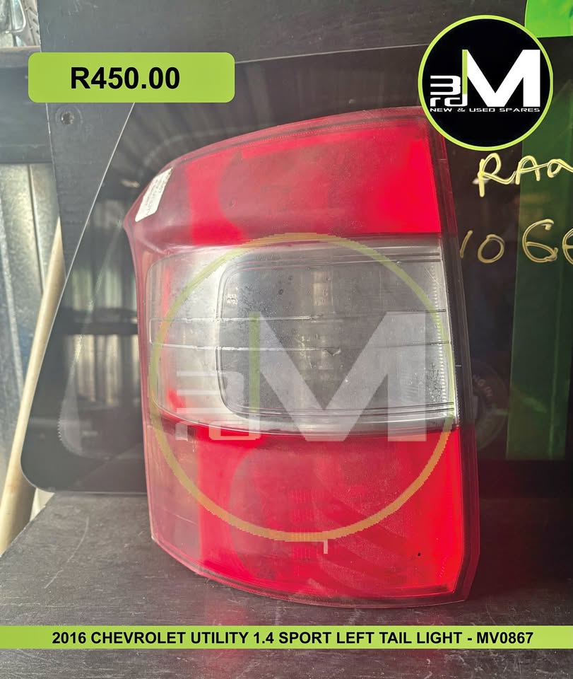 2016 CHEVROLET UTILITY 1.4 SPORT LEFT TAIL LIGHT - MV0867 2016 CHEVROLET UTILITY 1.4 SPORT TAIL LIGHT RIGHT - MV0867 SOLD INDIVIDUALLY To enquire about parts from a vehicle, LANDLINE ☎ - CHARLES 📱 - HILSON 📱 - BRUNO 📱 - 083 704 2774view more 728 Dame Avenue, Rand Leases , Roodepoort, 1709