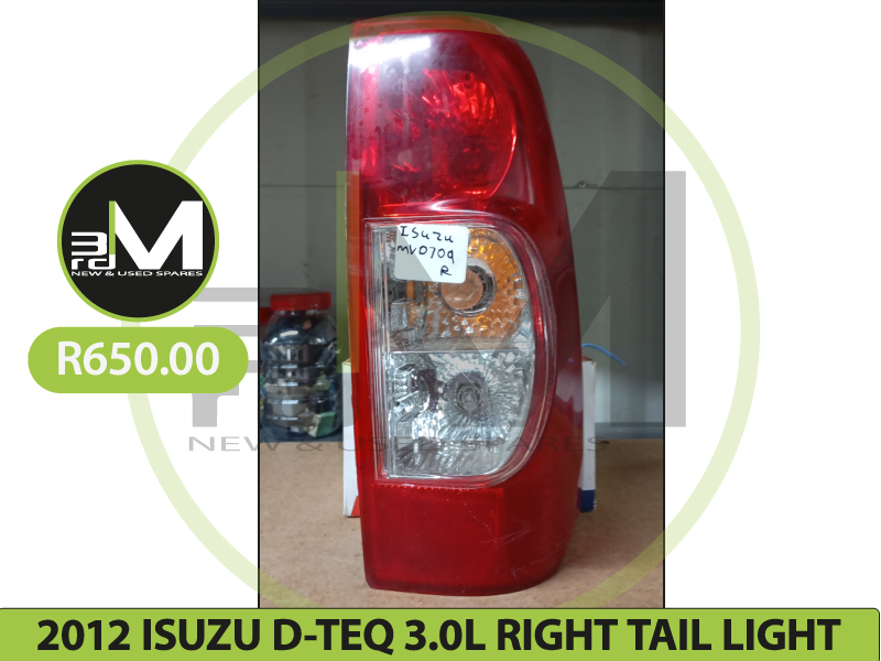 2012 ISUZU D TEQ 3.0L DIESEL RIGHT SIDE TAIL LIGHT R650 MV0709