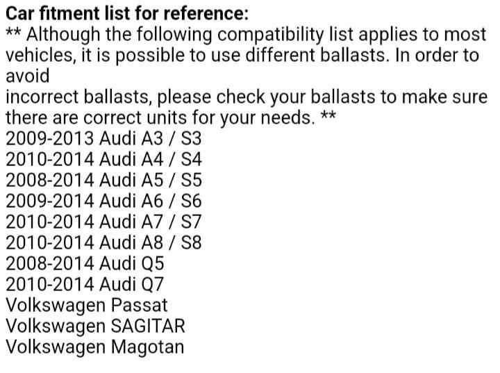 Audi headlight xenon ballast control module. Brand new sealed boxed unit. Suitable use in A1, A3, A4, A5, A6, A7, A8, Q5 and Q7. OEM Part number- 8K0941597 / E This ballast also has other part Numbers as shown in pictures in this advert. DIRECT REPLACEMENT — This aftermarket ballast is 100% compatible and a direct replacement for your existing part. Designed to meet or exceed OEM specifications. Plug-and-play installation with no need to program or code the car. Fits either the left or right headlight. We also have other types off Audi / VAG model ballasts available for other models of Audi vehicles. We also have a range off Audi / Quattro / S line decals stickers, badges, emblems, keyrings and TPMS valve stems. Call or whatsapp for more details and pictures. Courier available country wide to your door with a tracking number