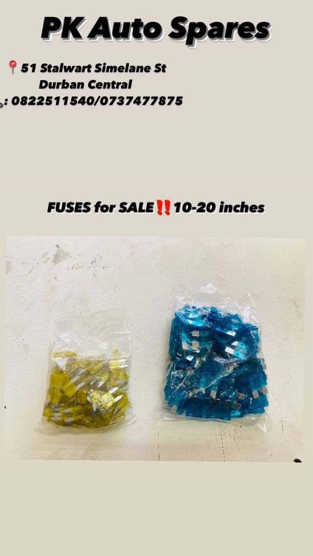 Fuses from 12" to 25"@pk auto spares 51 Stalwart simelane street 0640986131view more