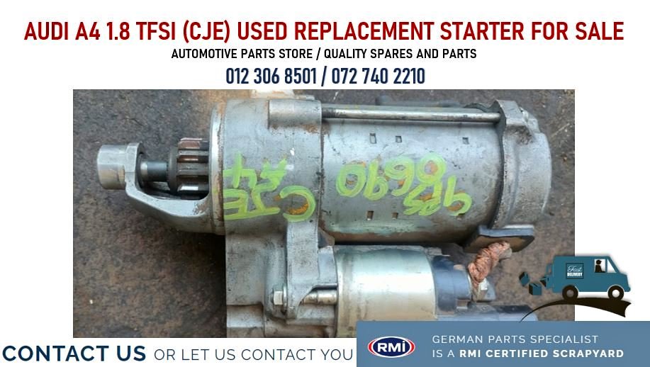Audi A4 1.8 TFSI (CJE) used replacement starter for sale Automotive parts store for Audi We deliver and courier nationwide. Payment on delivery available. Our website: https://germanparts-specialist.co.za/ https://wa.me/+27727402210view more Call / WhatsApp: Our sales Team David: 072 740 2210view more Landline: 012 306 8501view more E-mail: Please leave us a review: https://g.page/r/CcrBNb5GEdkJEAI/review 439 Vom Hagen Street, Pretoria West Kindly note we don’t advertise prices German Parts Specialist - Suppliers of second-hand used and new replacement spare parts. We offer quality and affordable OEM products new and used replacement spare parts for Audi. We are an automotive scrapyard and parts store with a wide range of vehicles that we salvage and break/ strip for spare parts. We stock a variety of aftermarket replacement parts. We stock parts such as engines, engines replacement spare parts, gearboxes, body spare parts, suspension, steering, auto electrical parts, rims and second- hand tyres and more. Please be advised that these photos are an example and parts are subject to availability. #auditfsi #audia1 #audia3 #audia4 #audia5 #audia5 #audia6 #audia7 #audia8 #q3 #q5 #q7 #audis5 #audis6 #audis3 #auditt #quattro #audirs3 #rs3 #rs4 #sportback #audiusedspares #audinewparts