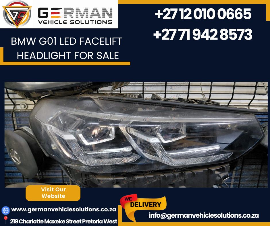 Upgrade your BMW g01 with sleek LED facelift headlights, offering sharp design and clear visibility. Ideal for modernising your X3 with factory-style lighting. Order from German Vehicle Solution in Pretoria West. We deliver across Gauteng and South Africa.