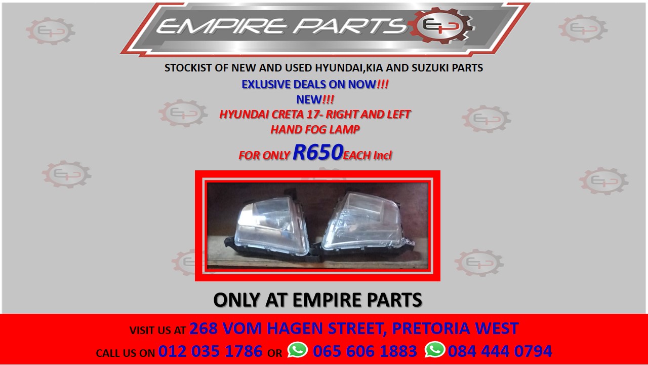 HYUNDAI CRETA 17- RIGHT AND LEFT HAND FOG LAMP . More details:Price - R650.00Condition - NewContact Empire Parts for more information.