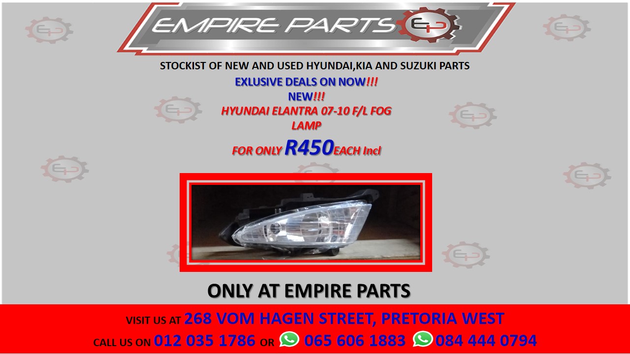 HYUNDAI ELANTRA 07-10 F/L FOG LAMP FOR SALE EACH . More details:Price - R450.00Condition - NewContact Empire Parts for more information.