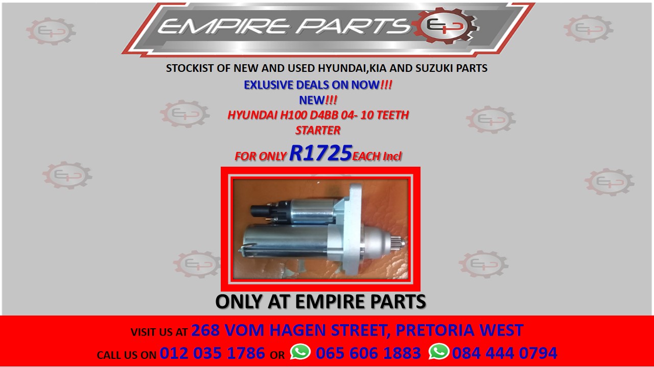 HYUNDAI H100 D4BB 04- 10 TEETH STARTERPrice - R1725.00Make - HyundaiCondition - NewContact Empire Parts for more information.