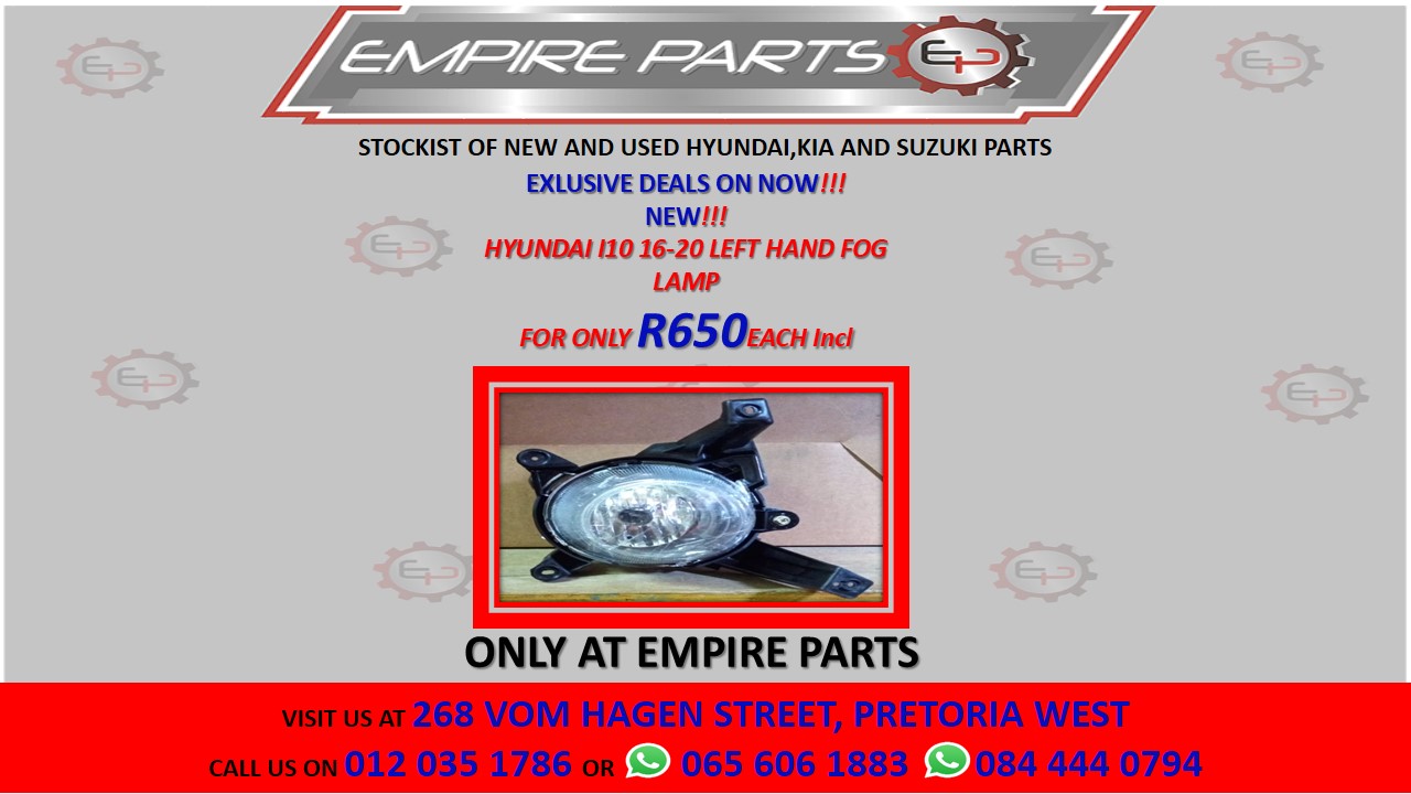 HYUNDAI I10 16-20 LEFT HAND FOG LAMP . More details:Price - R650.00Make - HyundaiCondition - NewContact Empire Parts for more information.
