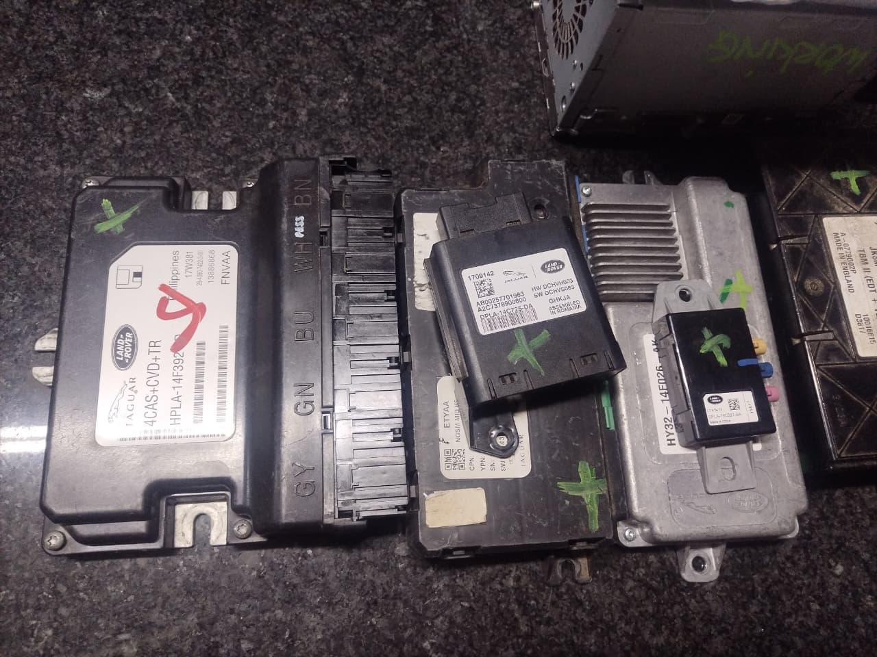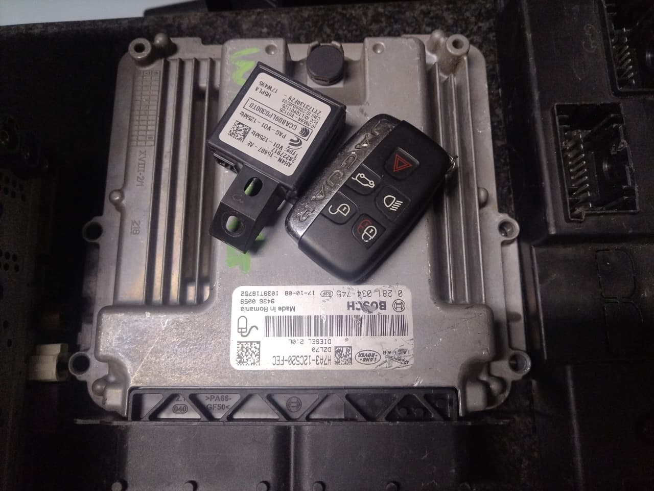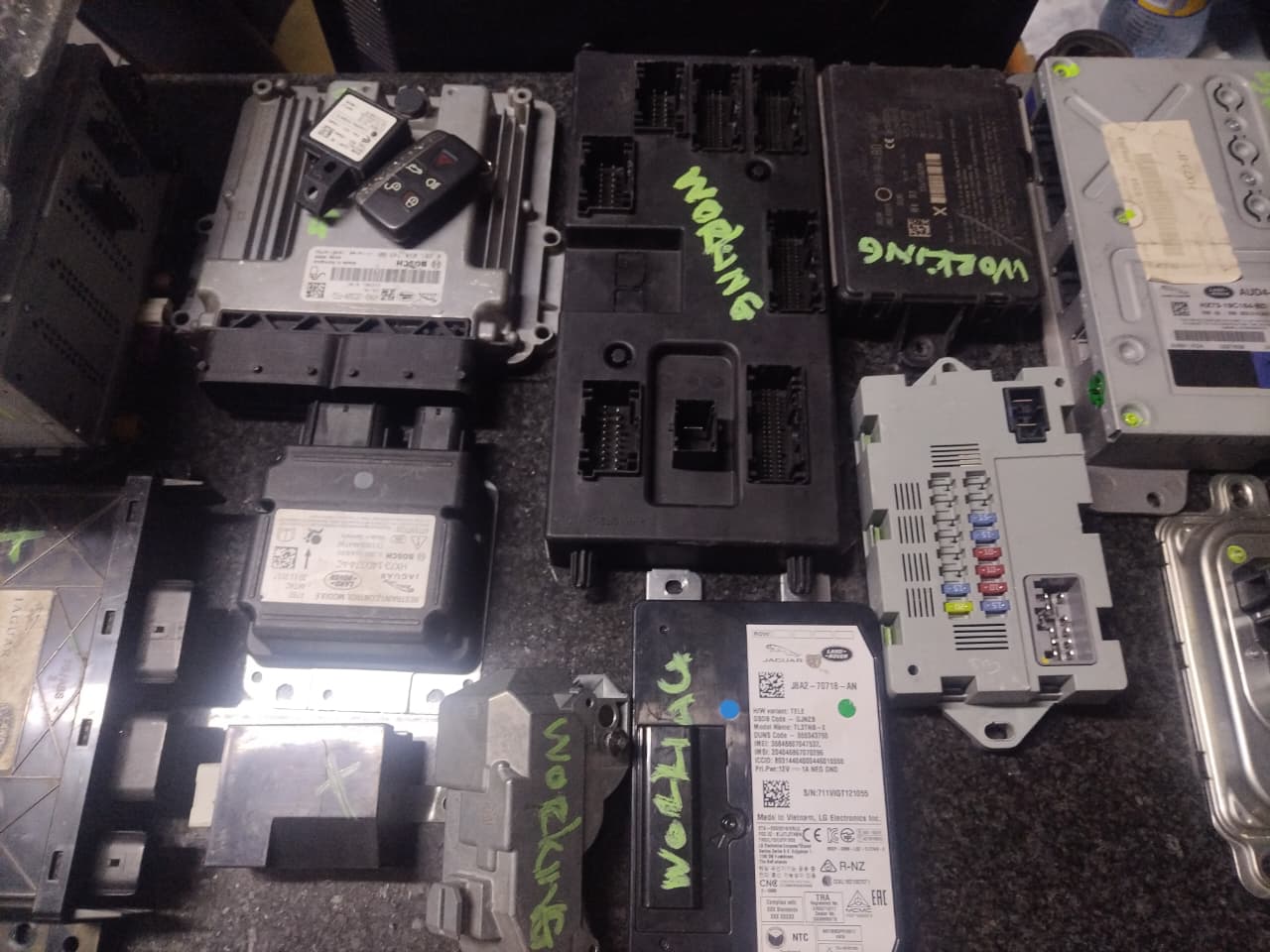 Original Jaguar F-Pace 2.0 complete lockset for sale. This is the full matching ECU (engine control unit) + key set + immobiliser components required to make the vehicle start and run. Ideal replacement for stolen keys, ECU failure, or accident-damaged vehicles where coding costs don’t make sense.