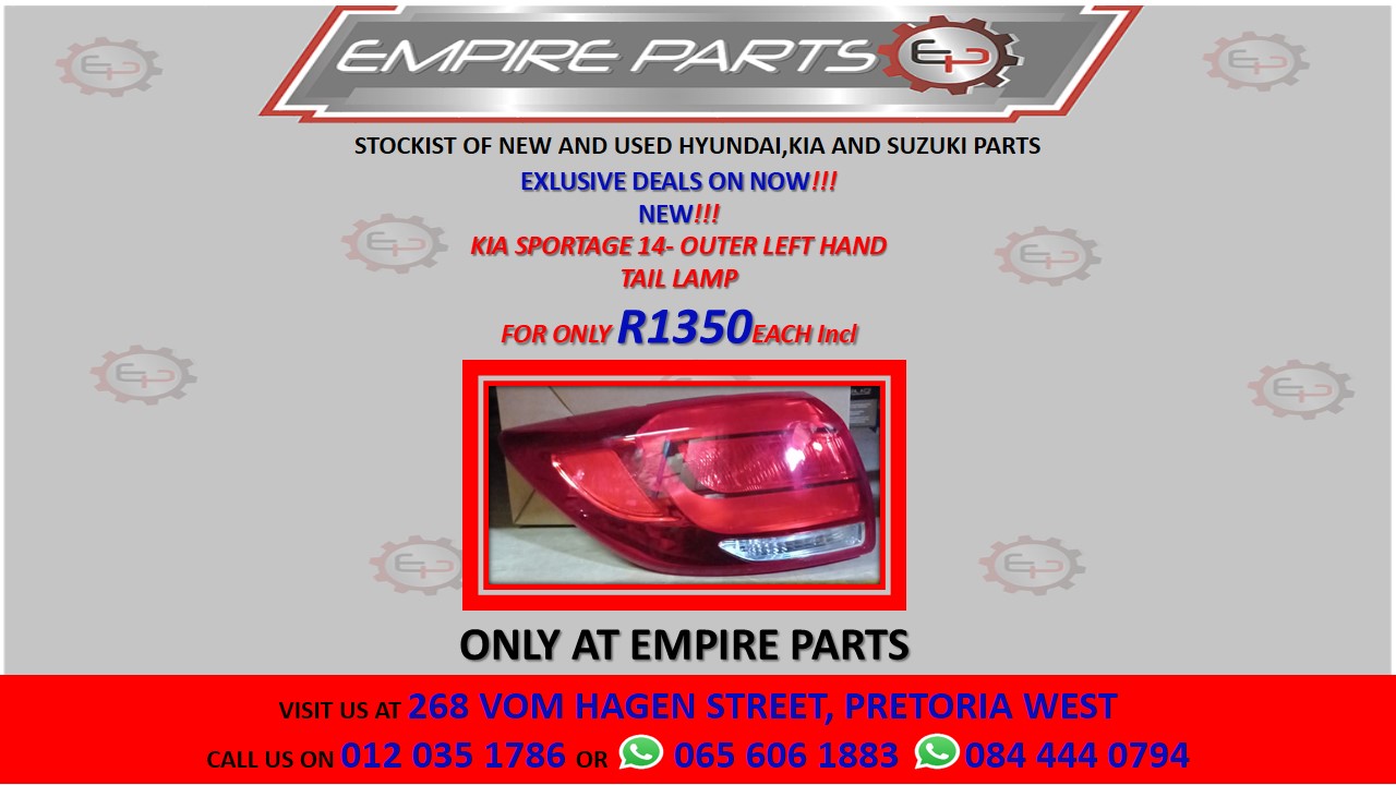 KIA SPORTAGE 14-OUTER LEFT HAND TAIL LAMP . More details:Price - R1350.00Condition - NewContact Empire Parts for more information.