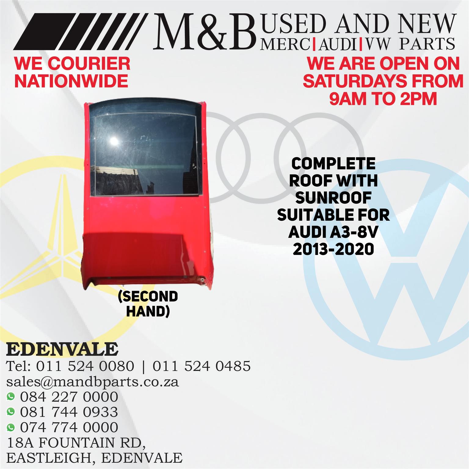 Complete Roof with Sunroof (Second Hand) Suitable for Audi A3-8V 2013-2020