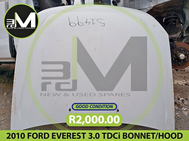 2010 FORD EVEREST 3.0 TDCi BONNET R2000 MV0743 To enquire about parts from a vehicle, LANDLINE ☎ - CHARLES 📱 - HILSON 📱 - BRUNO 📱 - 083 704 2774view more 728 Dame Avenue, Rand Leases , Roodepoort, 1709 We deliver in and around JHB / PTA as well as courier for your convenience nation wide and to neighbouring countries. All our engines and manual gearboxes come with a 30-day guarantee, 7-day on all automatic gearboxes, terms and conditions apply.