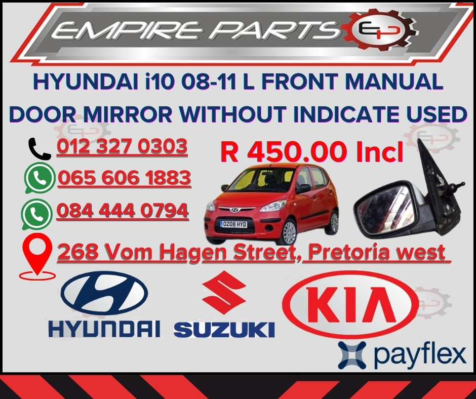 HYUNDAI I10 2008-2011 LEFT FRONT MANUAL DOOR MIRROR WITHOUT INDICATE . More details: