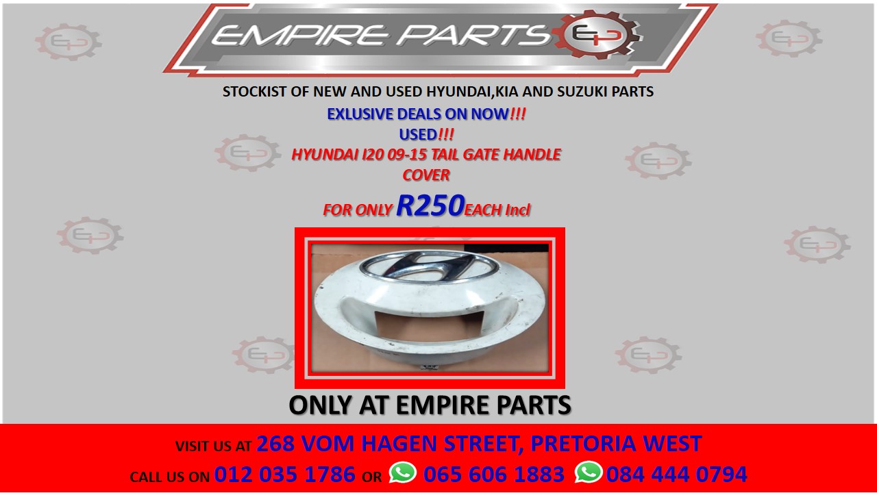HYUNDAI I20 09-15 TAIL GATE HANDLE COVERPrice - R250.00Make - HyundaiCondition - UsedContact Empire Parts for more information.