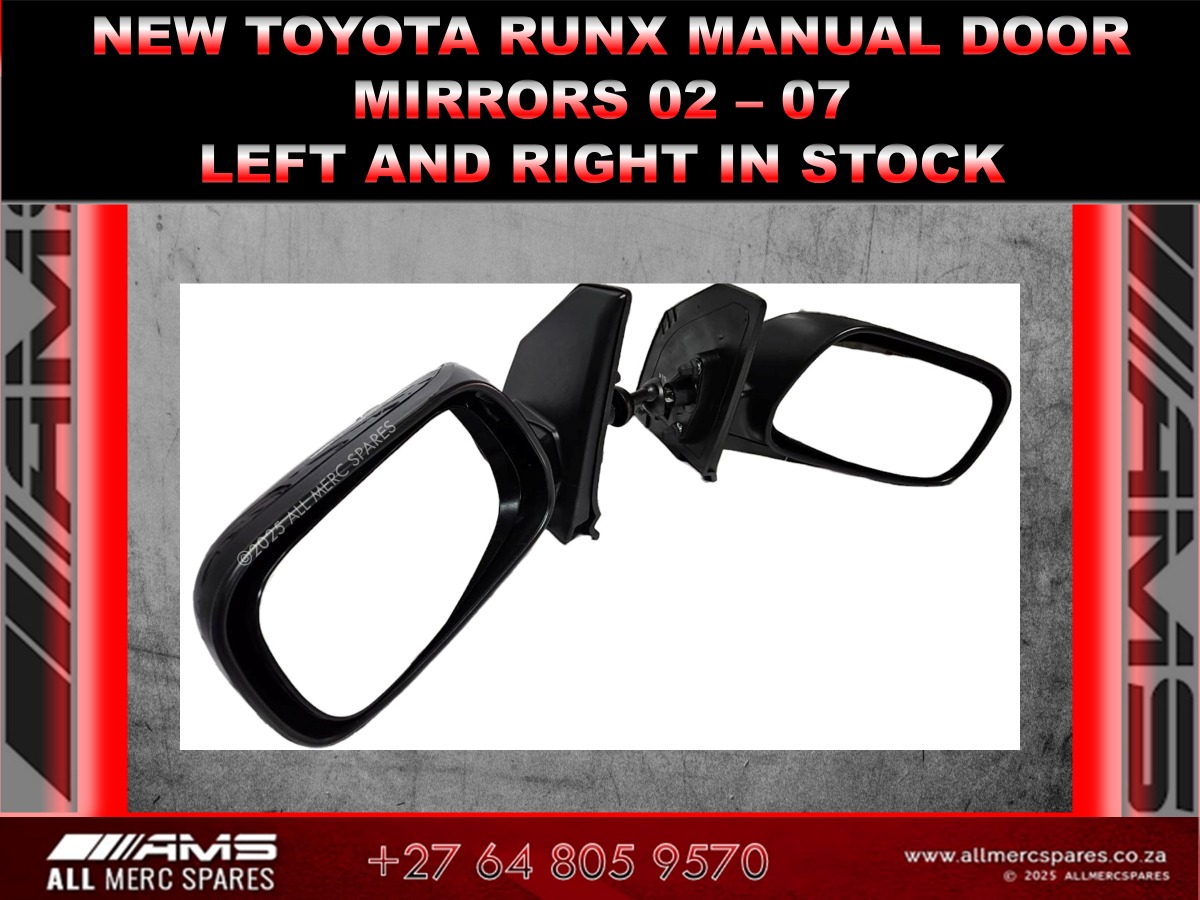Manual mirrors for Toyota Runx 2002–2007 models. Brand-new and ready for collection or delivery.