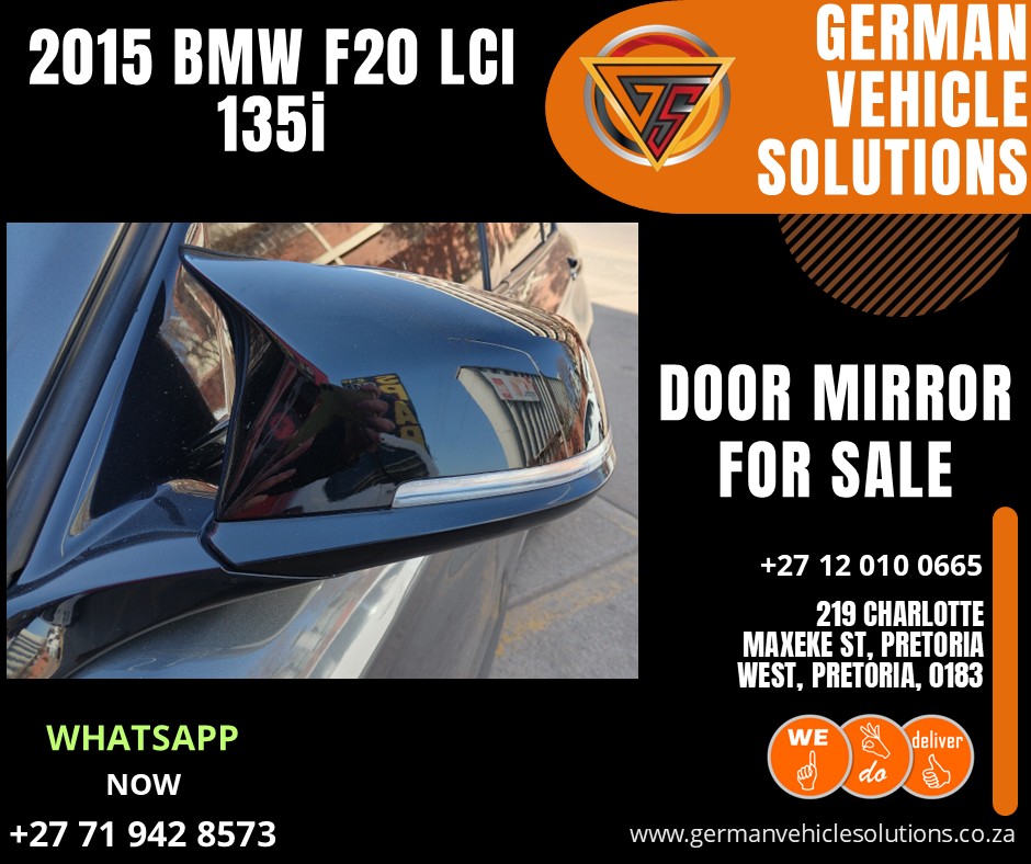 Get your hands on a quality pair of used side mirrors for the 2015 BMW f20 lci 135i. These electric door mirrors come complete with motors and housings intact. Mirrors fold properly and indicators function as expected. Ideal for restoring mirror functionality on your BMW 135i without paying full retail price. These are original BMW components that fit the f20 lci facelift shape perfectly. Excellent for owners looking to replace broken or stolen mirror units. Glass is clear, no cracks, and mirror covers are scratch-free.