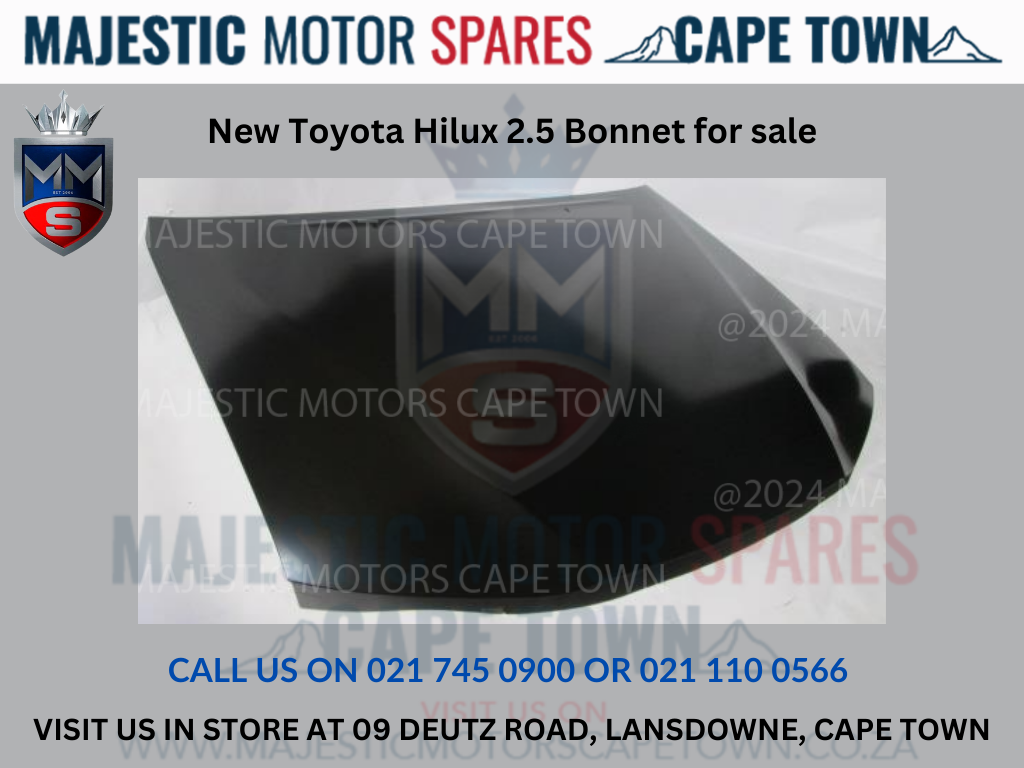 High-quality replacement bonnet designed for Toyota Hilux 2.5, ensuring a perfect fit and long-lasting durability. Ideal for restoring your vehicle's original look and function