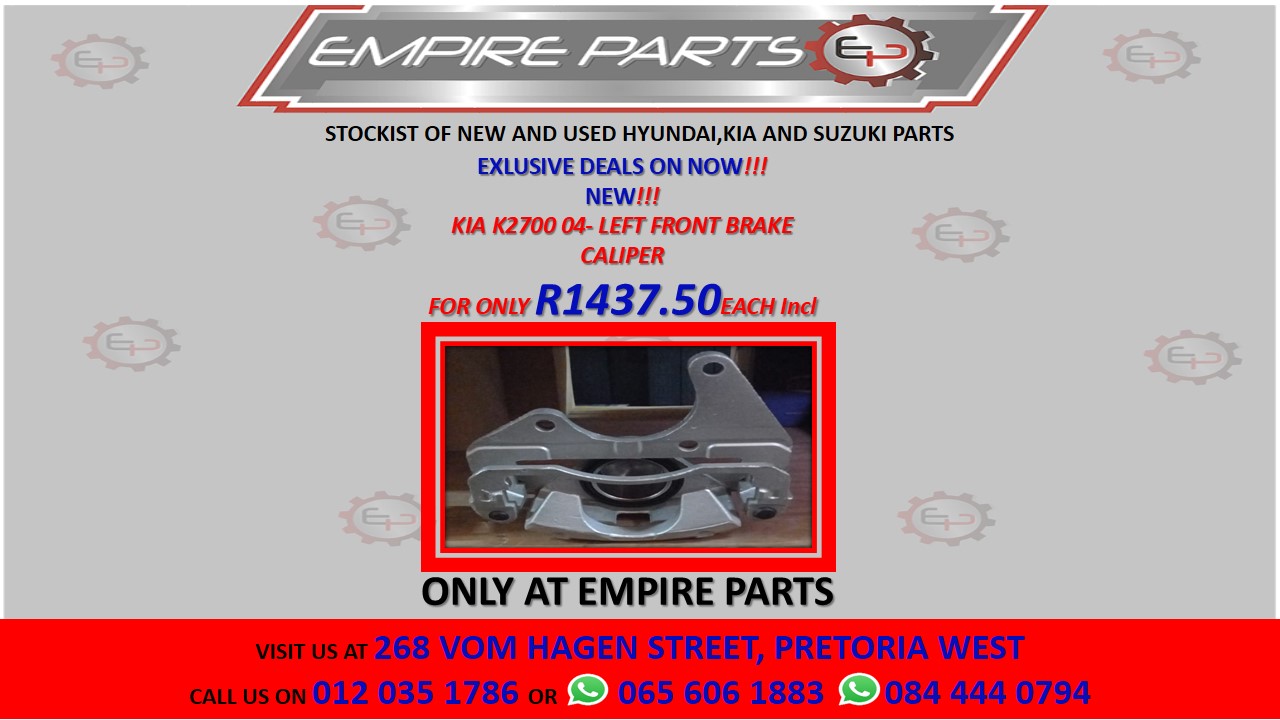 KIA K2700 04- LEFT FRONT BRAKE CALIPER . More details:Price - R1437.50Condition - NewContact Empire Parts for more information.