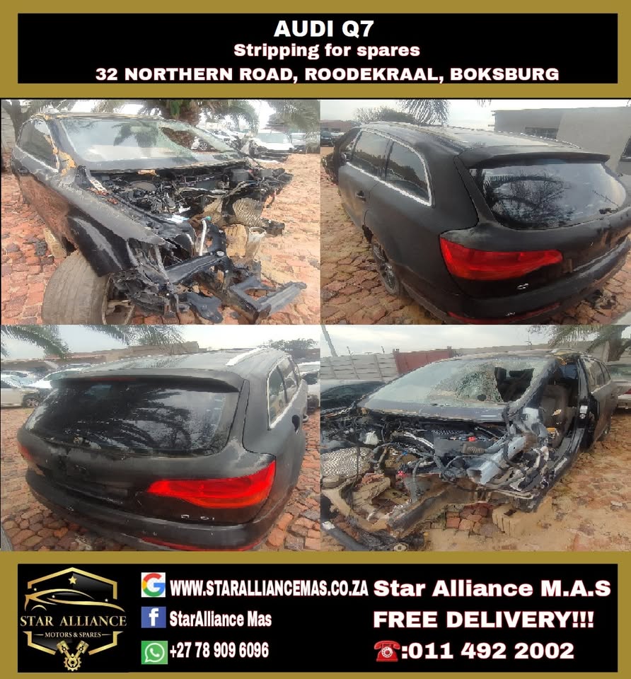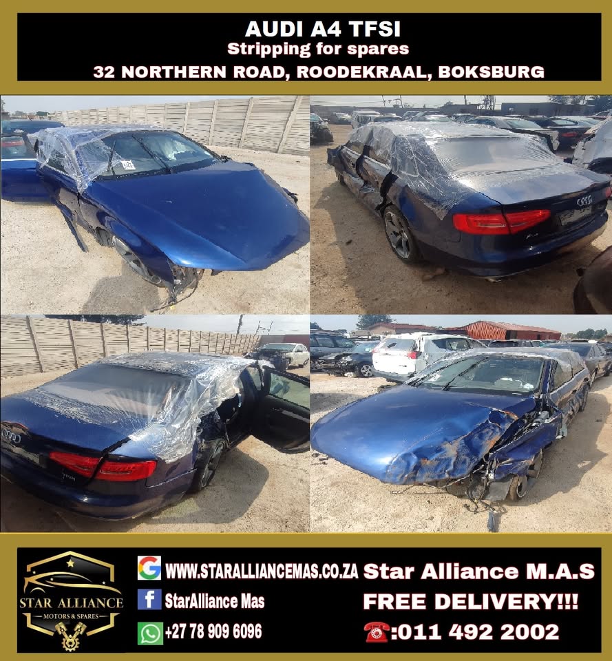 AUDI A3, A4, A5, A6, Q5, Q7 STRIPPING FOR SPARES STAR ALLIANCE MOTORS & SPARES. We are a secondhand motor vehicle spare dealer located in Boksburg, we stock over 32 brands of vehicles. We understand the importance of keeping your car in top condition by using only high-quality, genuine car parts. We are also aware of the costs involved in purchasing new parts, which has inspired us to provide a more affordable alternative without compromising on quality. Please do give us a call. 32 NORTHERN RD ROODEKRAAL 133Ir, BOKSBURG Whatsapp: Whatsapp: TRADING HOURS - MONDAY-FRIDAY 8AM - 5PM SATURDAY 8AM-13:30PM COURIER AVAILABLE NATIONWIDE